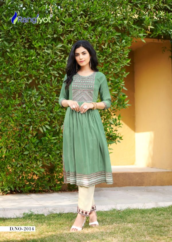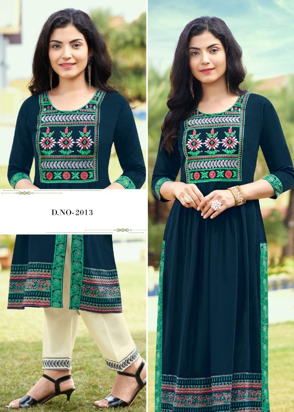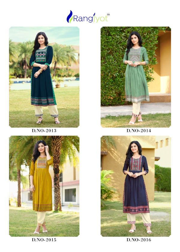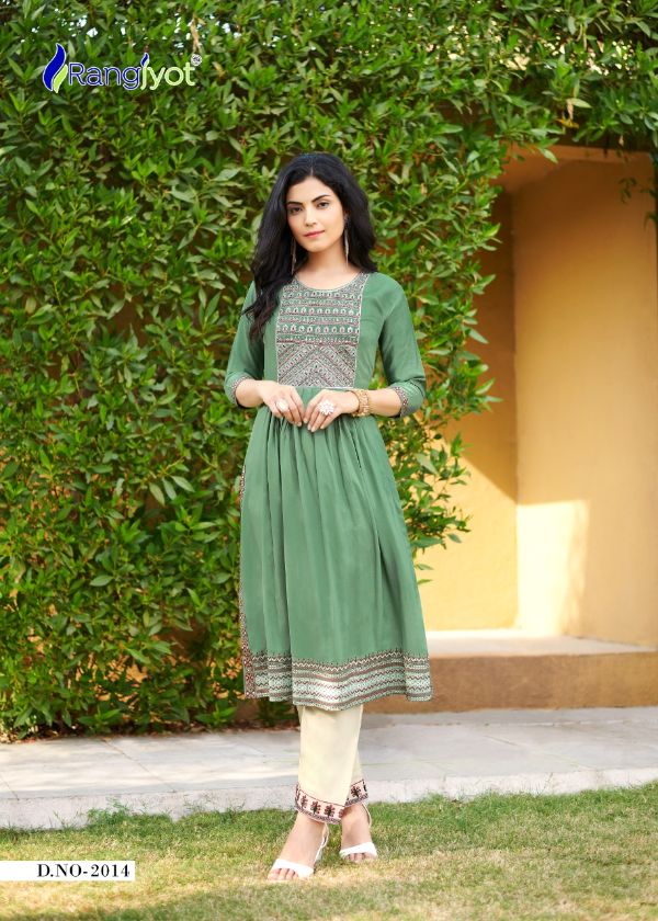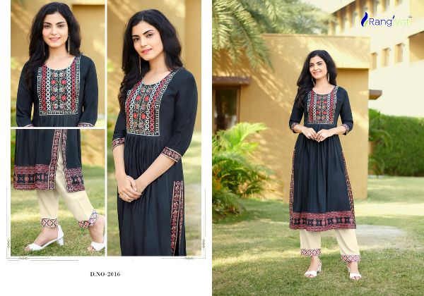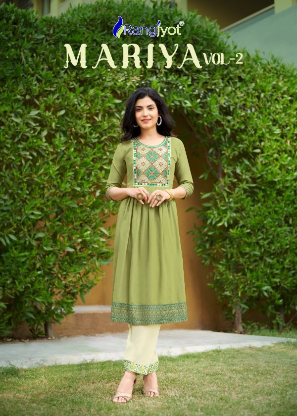 Rangjyot Presents Maria Vol-2 2009-2016 Series Rayon Kurti With Pent Classy Designs Having Designer Concept Fancy Collection
