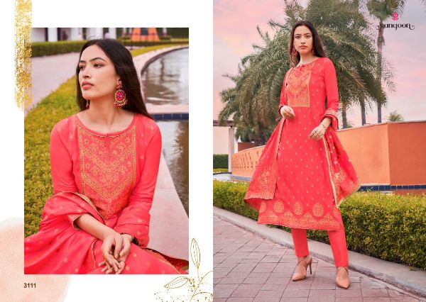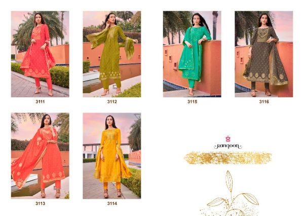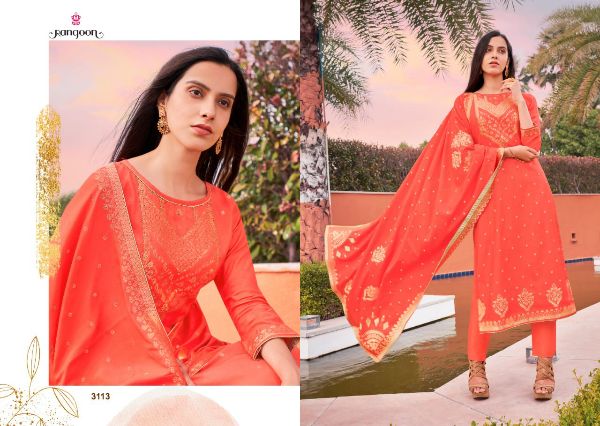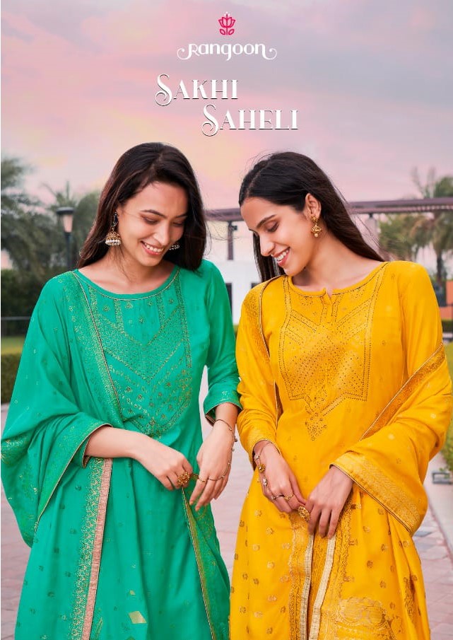Rangoon Presents Sakhi Saheli 3111 -3116 Series Pure Jacquard With Fancy Khatli Work And Cotton Mal Inner Fancy Salwar Suit Collection
