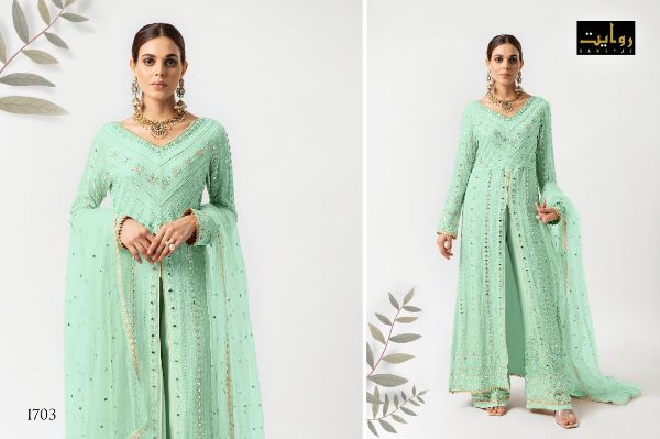 Rawayat Presents Anaya Vol 5 1701-1703 Series Faux Georgette With Mirror Embroidery Work Pakistani Suit Collection