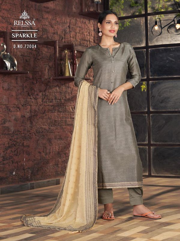 Relssa Presents Sparkle 72001 - 72006 Series Sparkle Silk With Sequvence Work And Embroidery Work Fancy Event Wear Salwar Kameez Collection