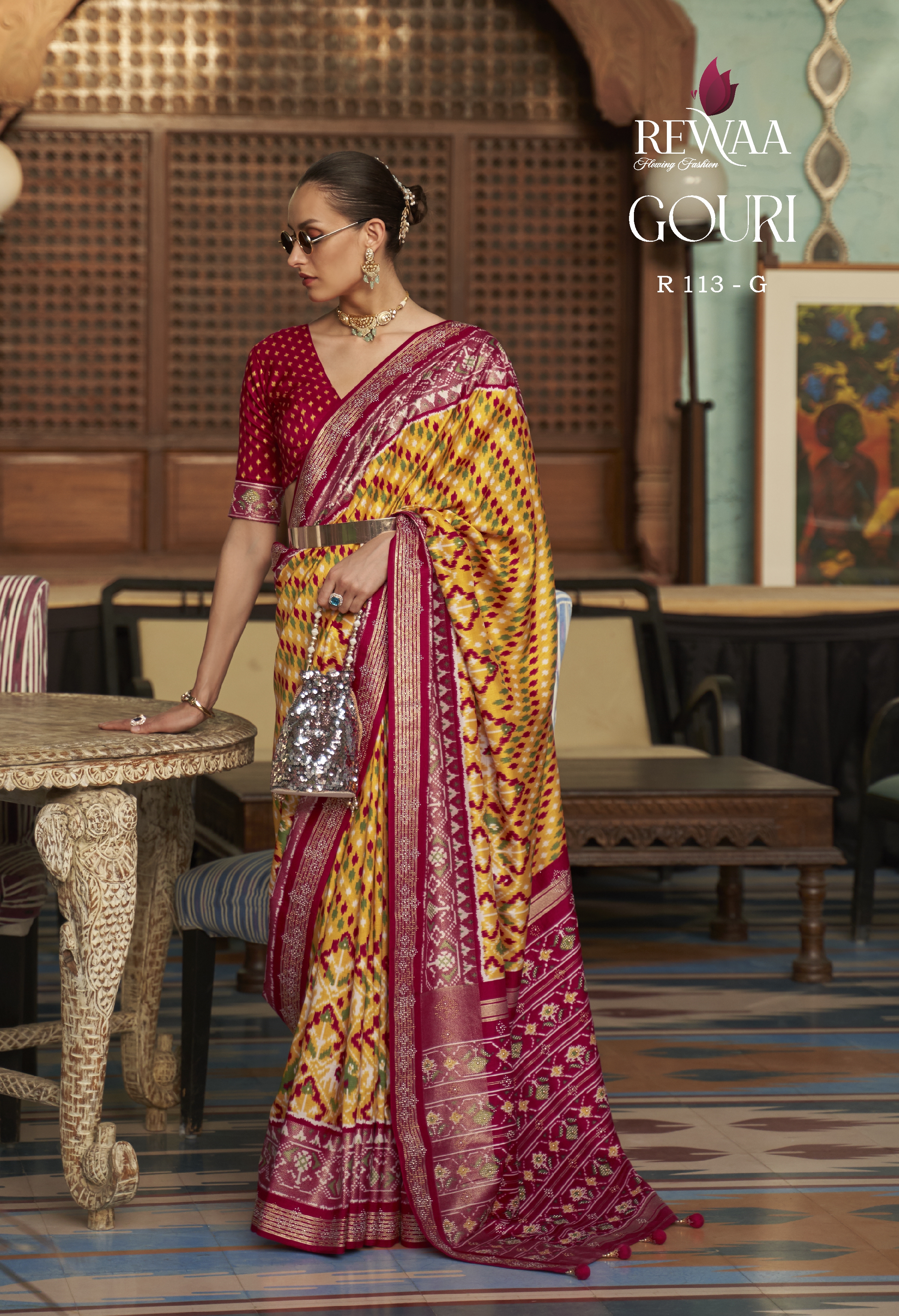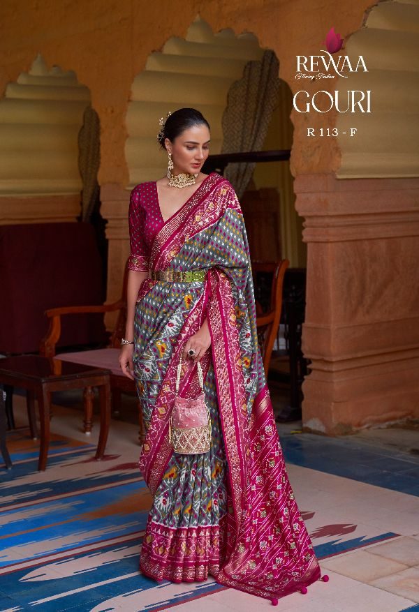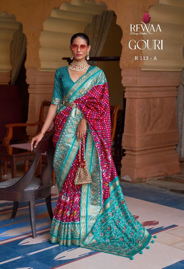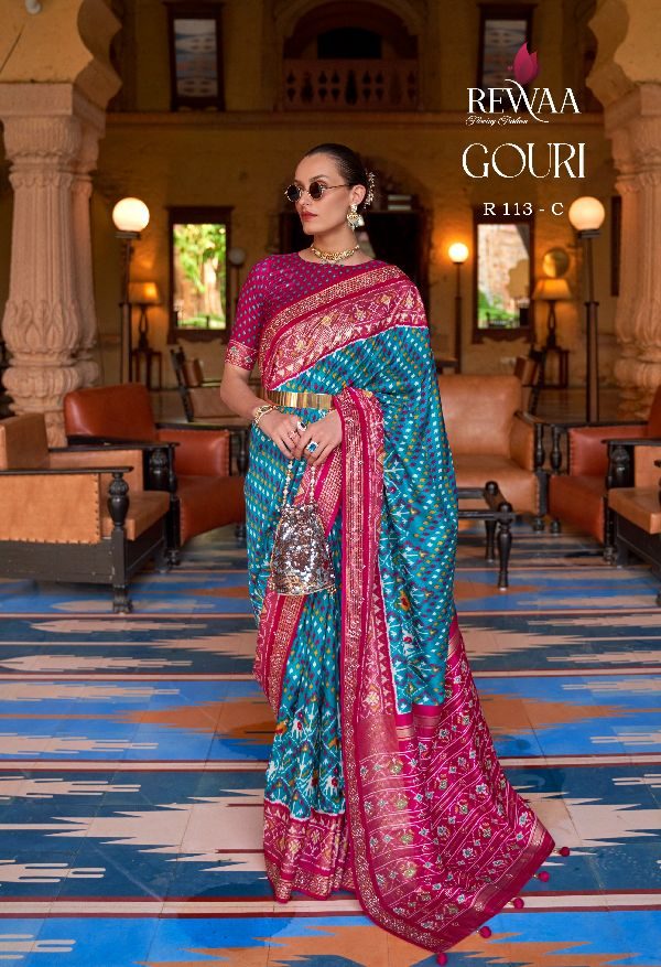 Rewaa Presents Gharana R-113-a - R-113-g Series Designer Party Wear Indian Saree At Wholesale Price