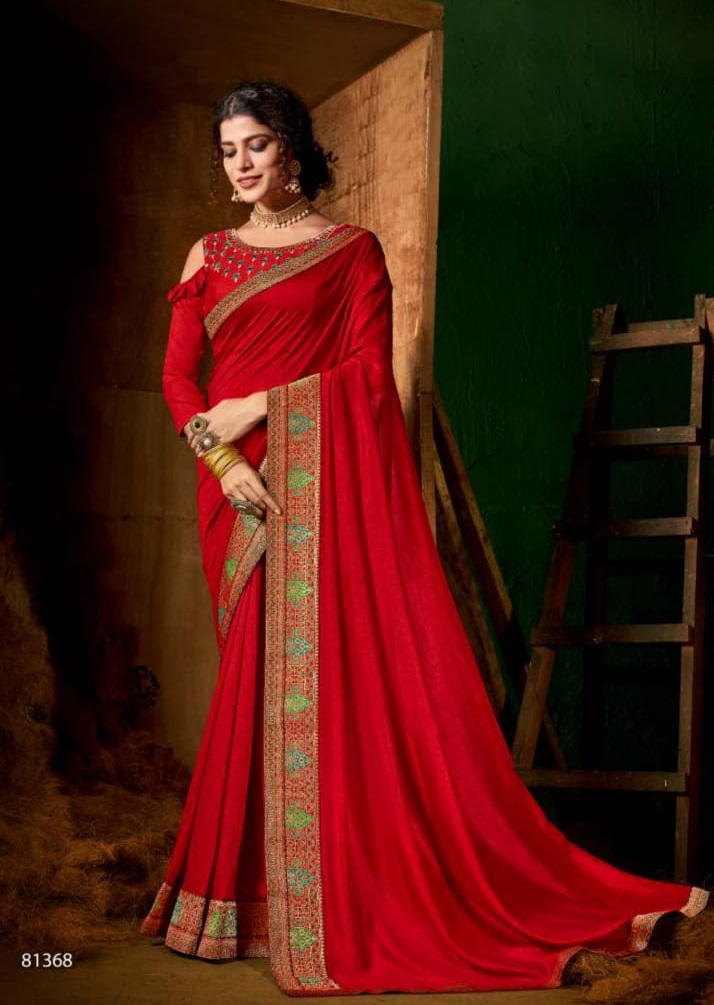 Right Women Designer Presents Shivanjali 81361 - 81368 Series Vichitra With Kasab Jacquard Lace Fancy Party Wear Saree Collection