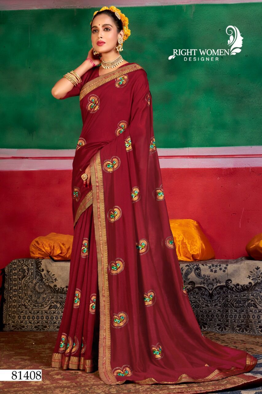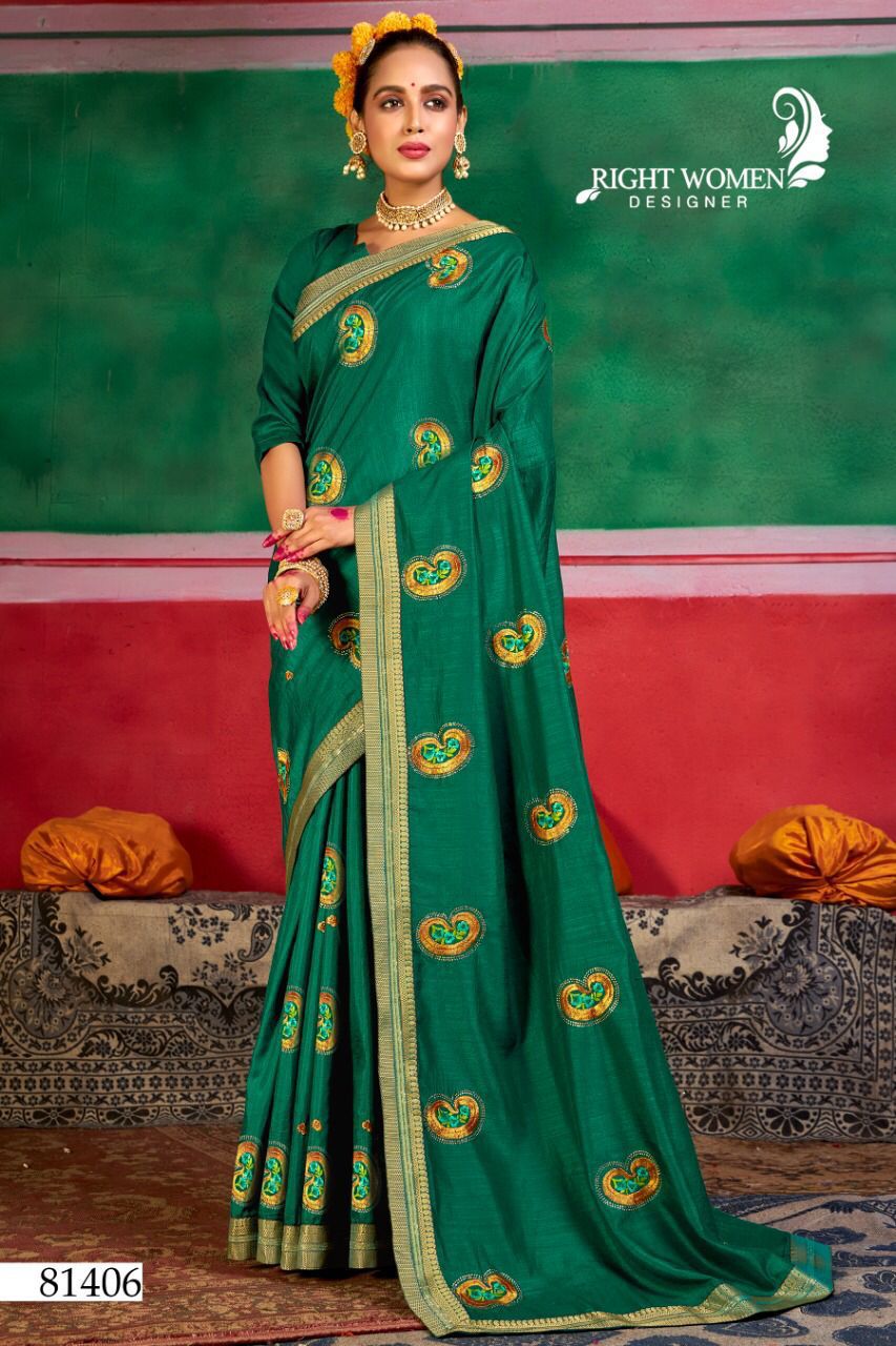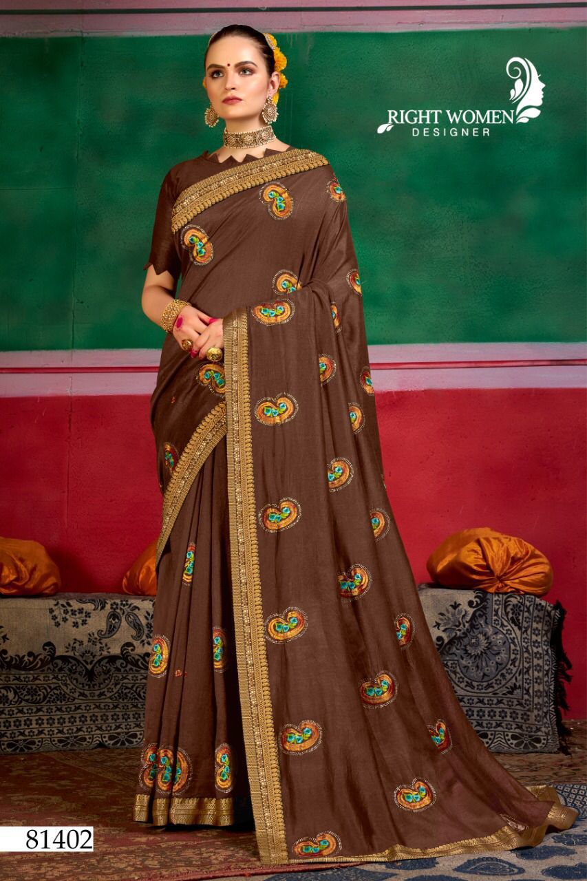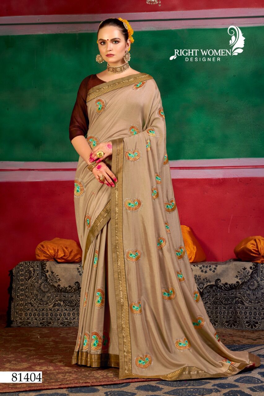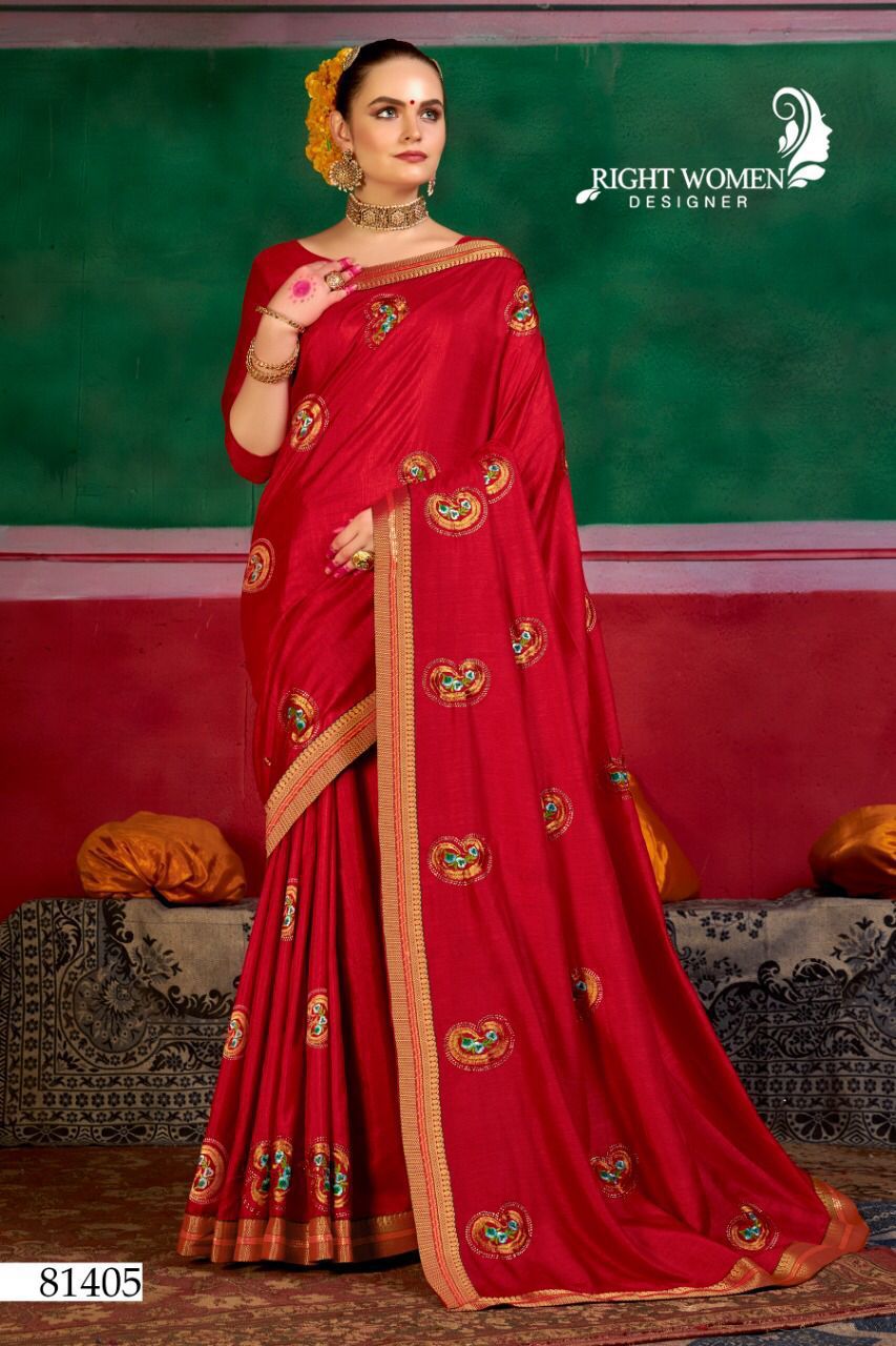 Right Women Designer Presents Tejaswini 81401 - 81408 Series Dola Silk With Zari Multy Embroidery Work Fancy Event Wear Saree Collection