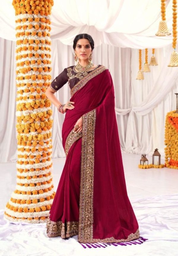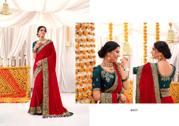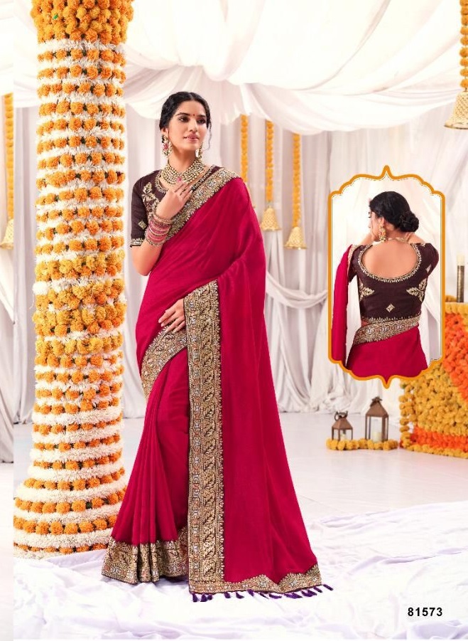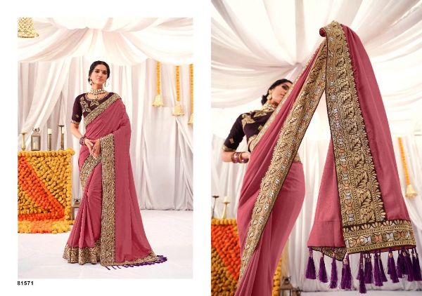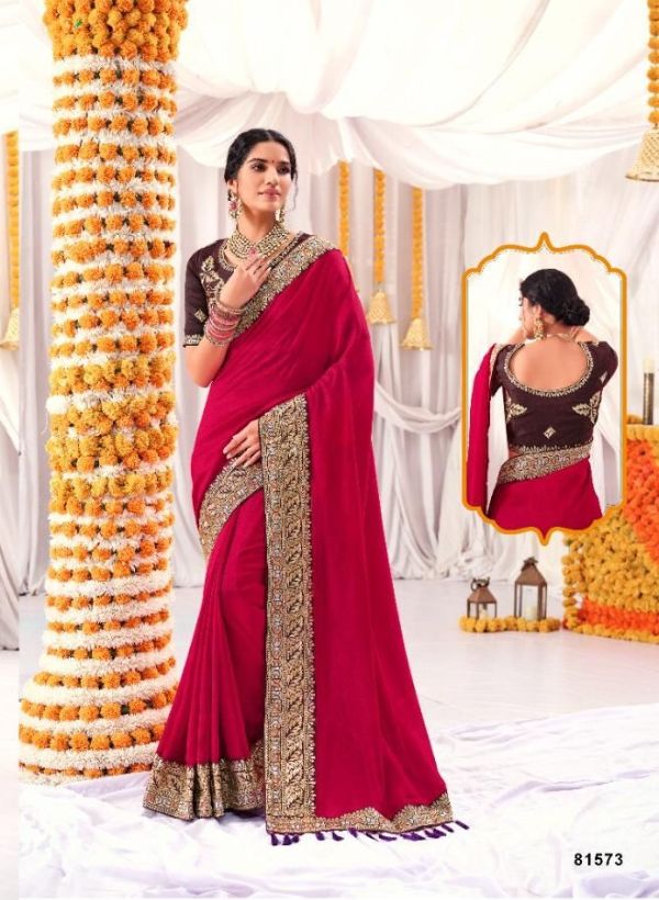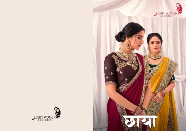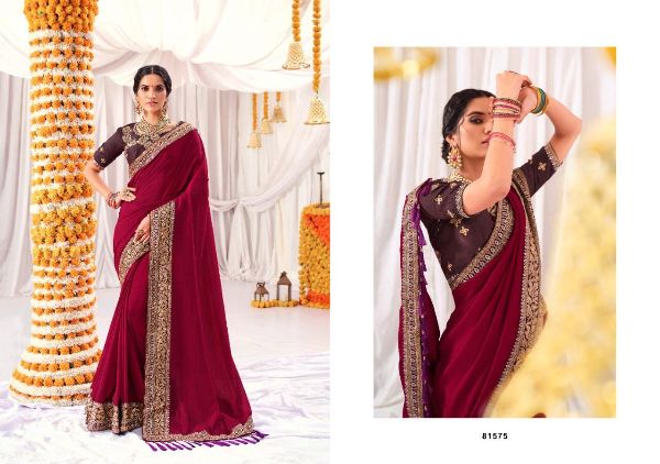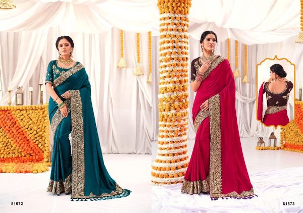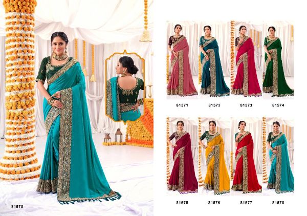Right Women Presents Chhaya 81571-81578 Series Vichitra Fabric With Jari Embroidery Work Lace Saree Collection#2065