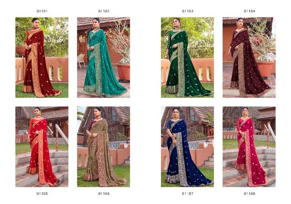 Right Women Presents Nisha 81181-81188 Series Vichitra With Jari Work Saree Collection#1625