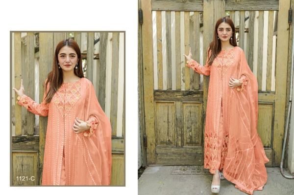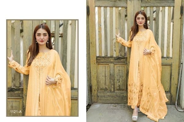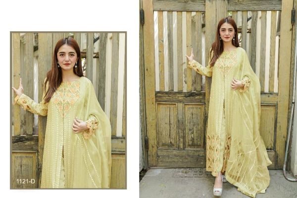 Riwayat Presents Cross Stitch Vol-2 1121-a - 1121-d Series Designer Pakistani Party Wear Suit At Wholesale Price