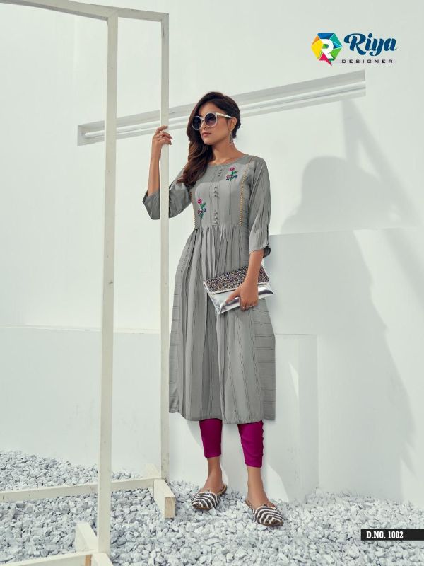 Riya Designer Presents Autumn 1001-1005 Series Fancy Rayon Weaving Kurti Collection