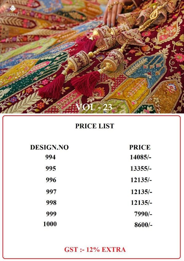 Royal Presents Royal Vol-23 994 To 1000 Series Exclusive Lehenga Choli Wedding Collection At Wholesale Price