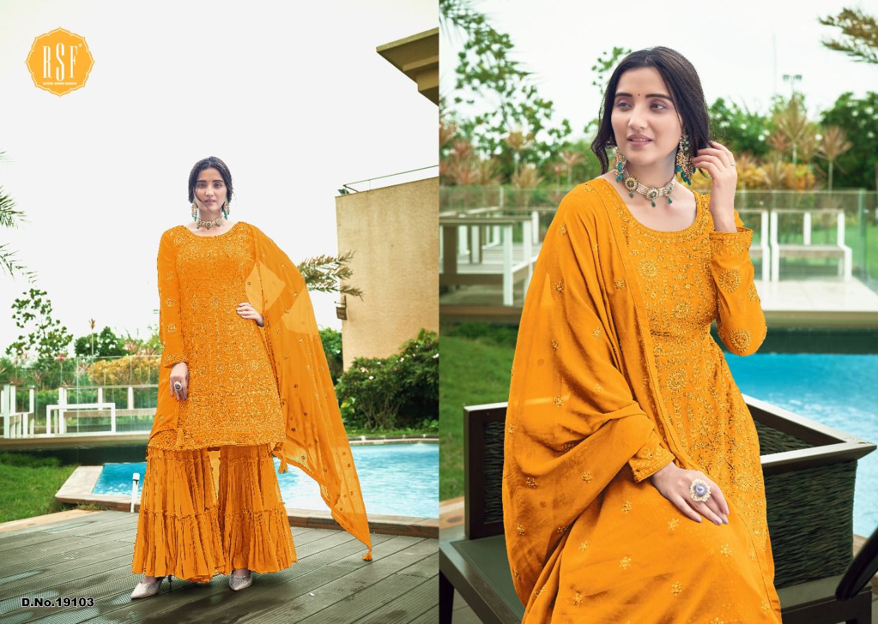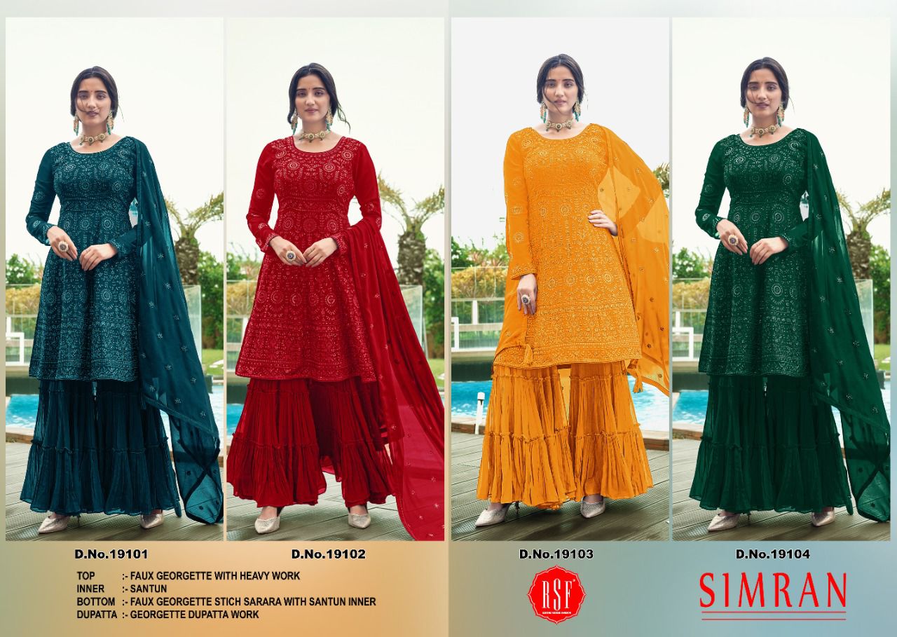 Rsf Presents Simran 19101 - 19104 Series Pure Faux Georgette With Heavy Multi Sequence Embroidery With Attractive Look Fancy Festival Wear Salwar Suit Collection