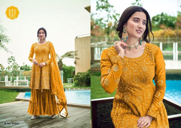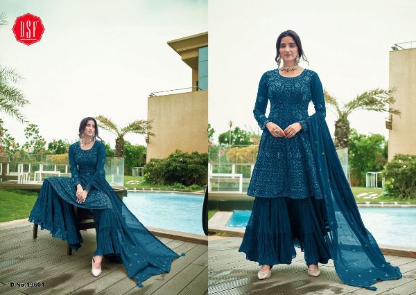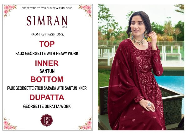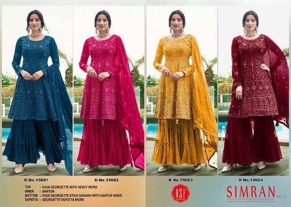 Rsf Presents Simran-2 19601-19604 Series Pure Faux Georgette With Heavy Multi Sequence Embroidery Freesize Fullstich Salwar Suit Collection