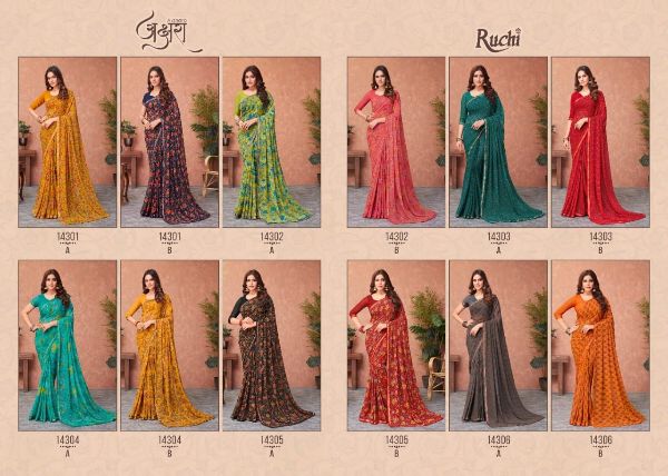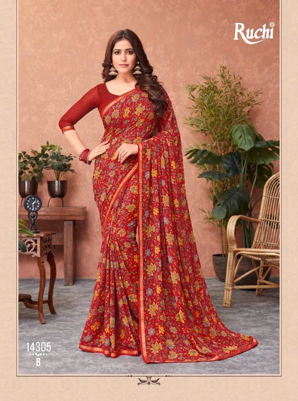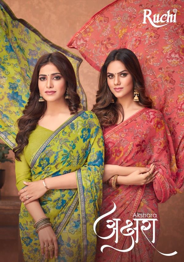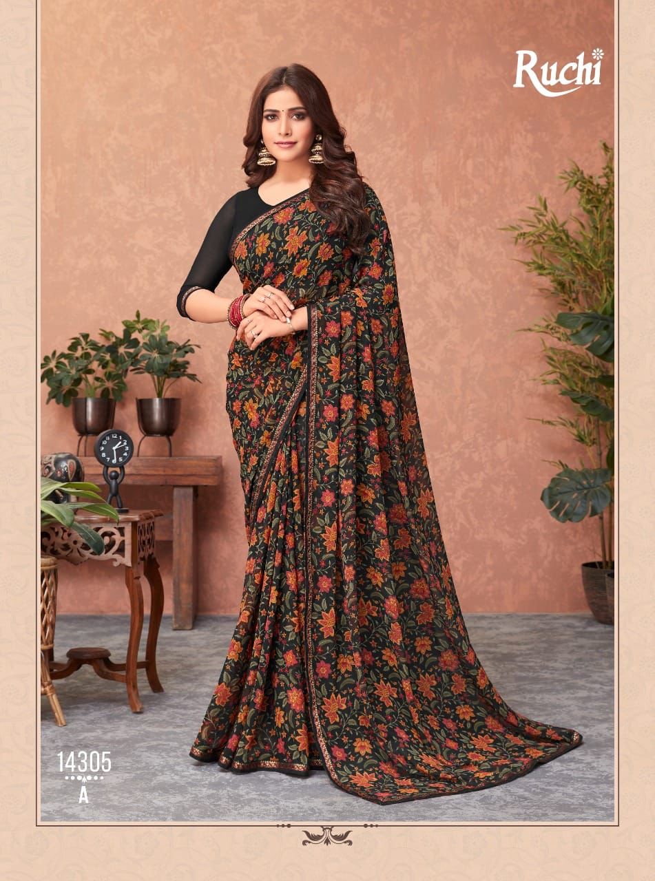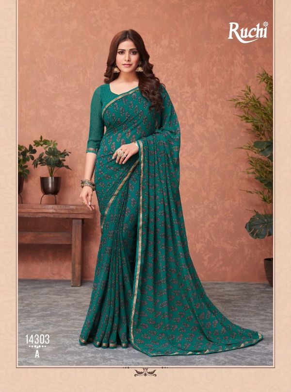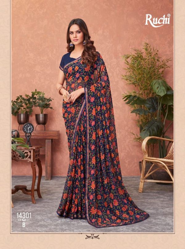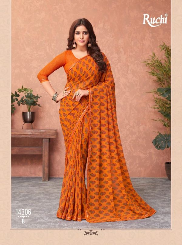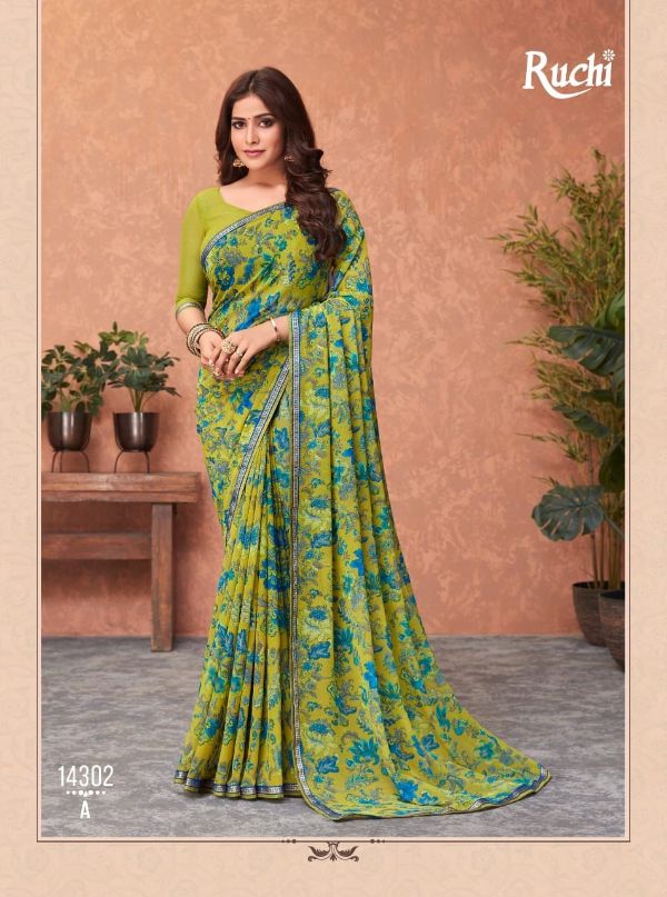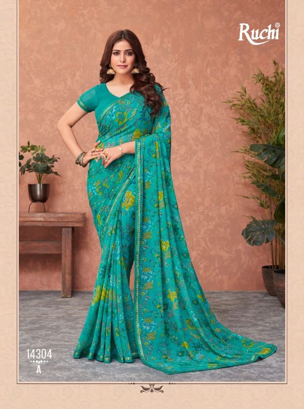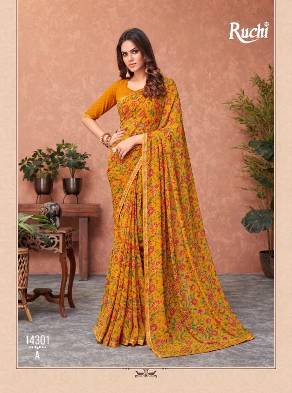 Ruchi Presents Akshara 14301a-14306b Series Butter Georgette Saree Collection#1979