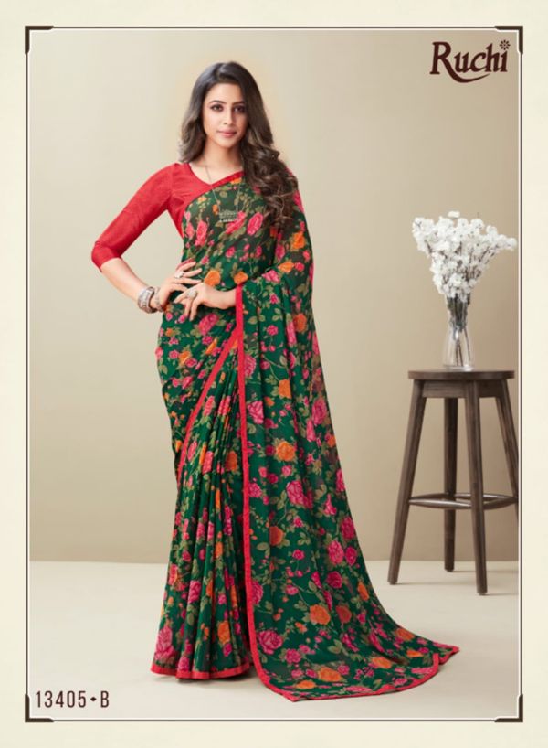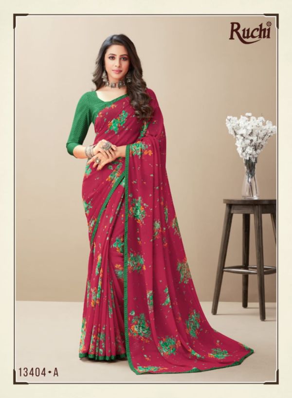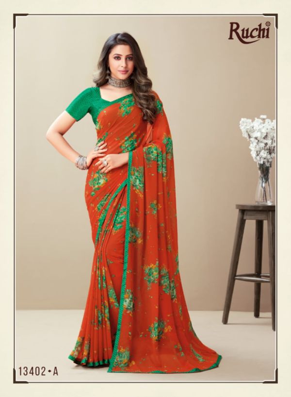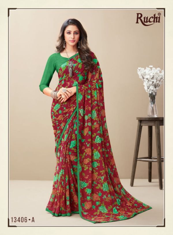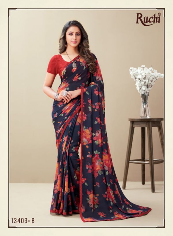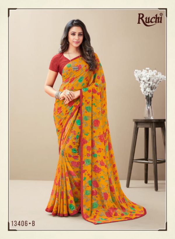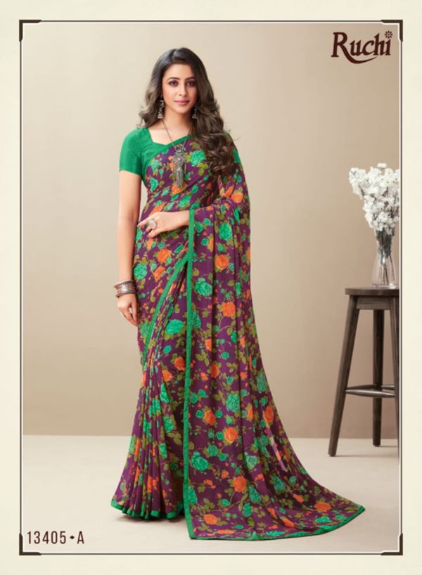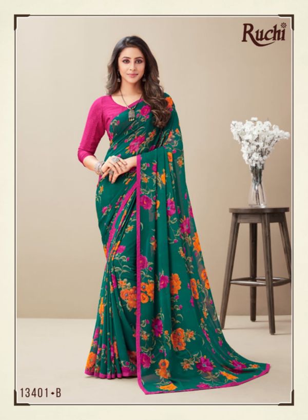 Ruchi Presents Guldasta 13401a-13406b Series Georgette With Silk Border And Fancy Saree Collection