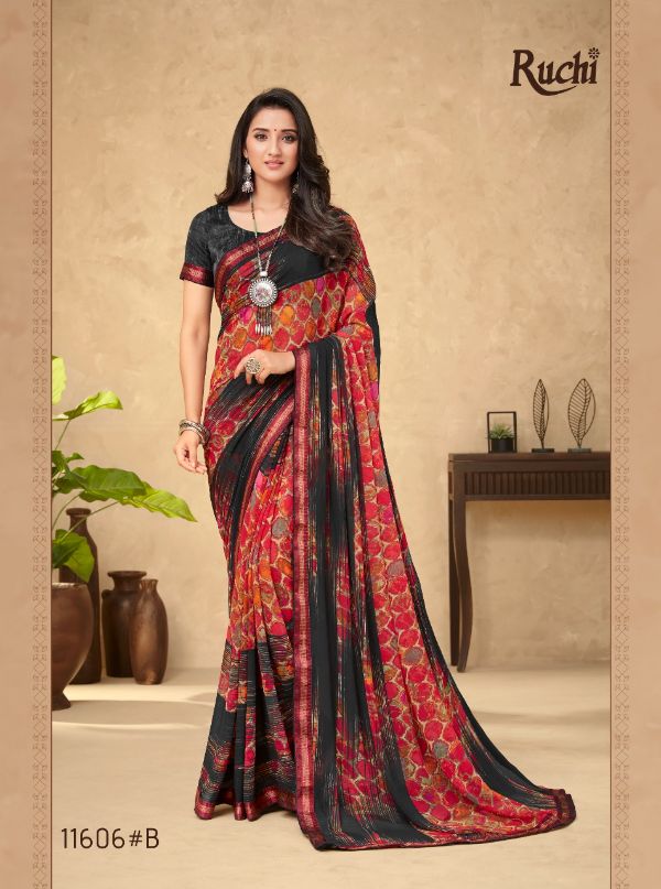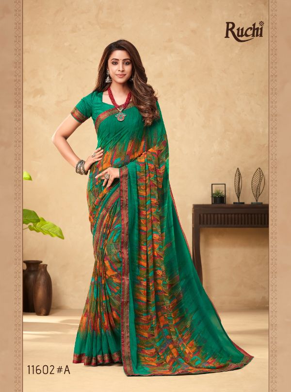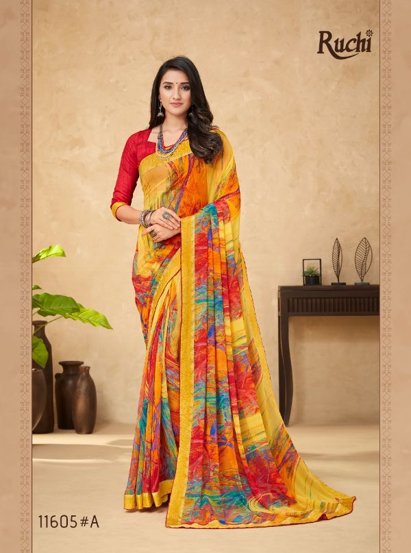 Ruchi Presents Saundarya 11601a - 11606b Series Heavy Georgette Attached With Border Fancy Casual Wear Saree Collection