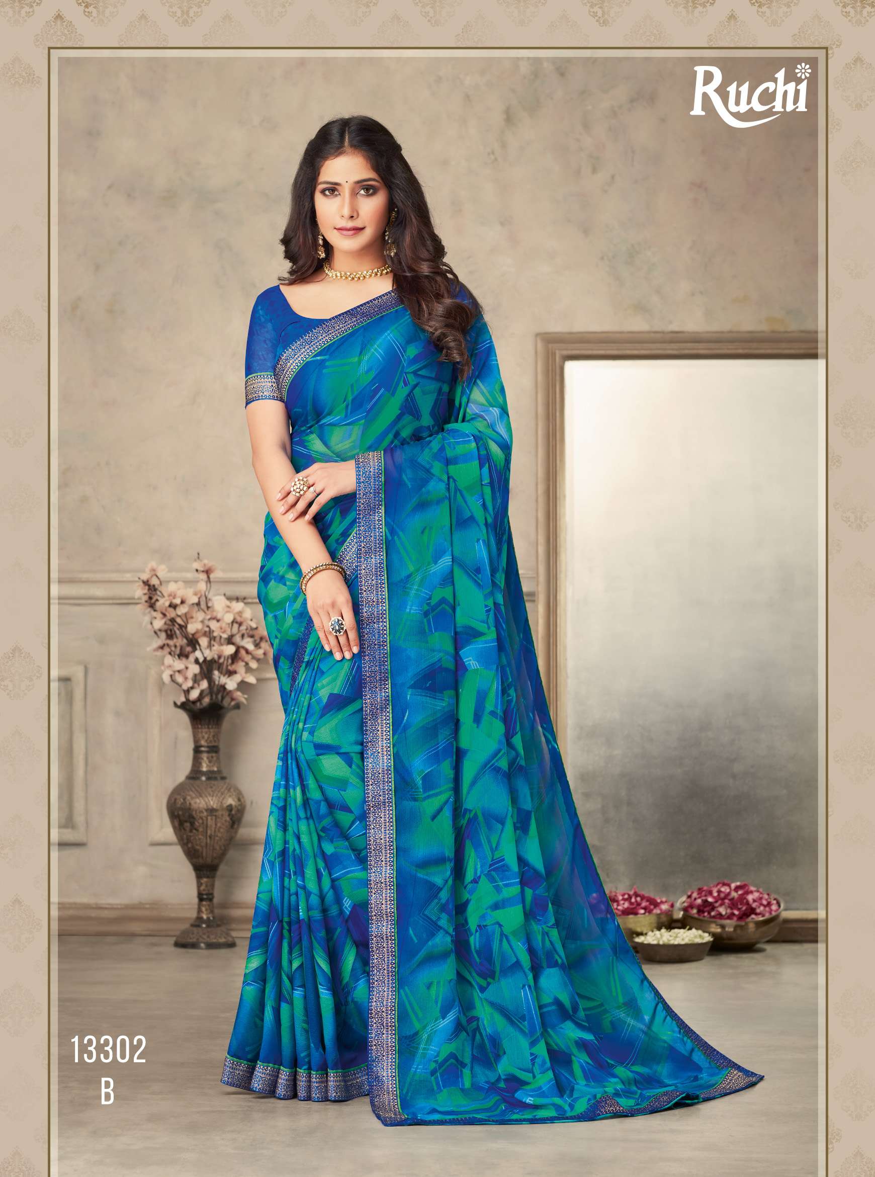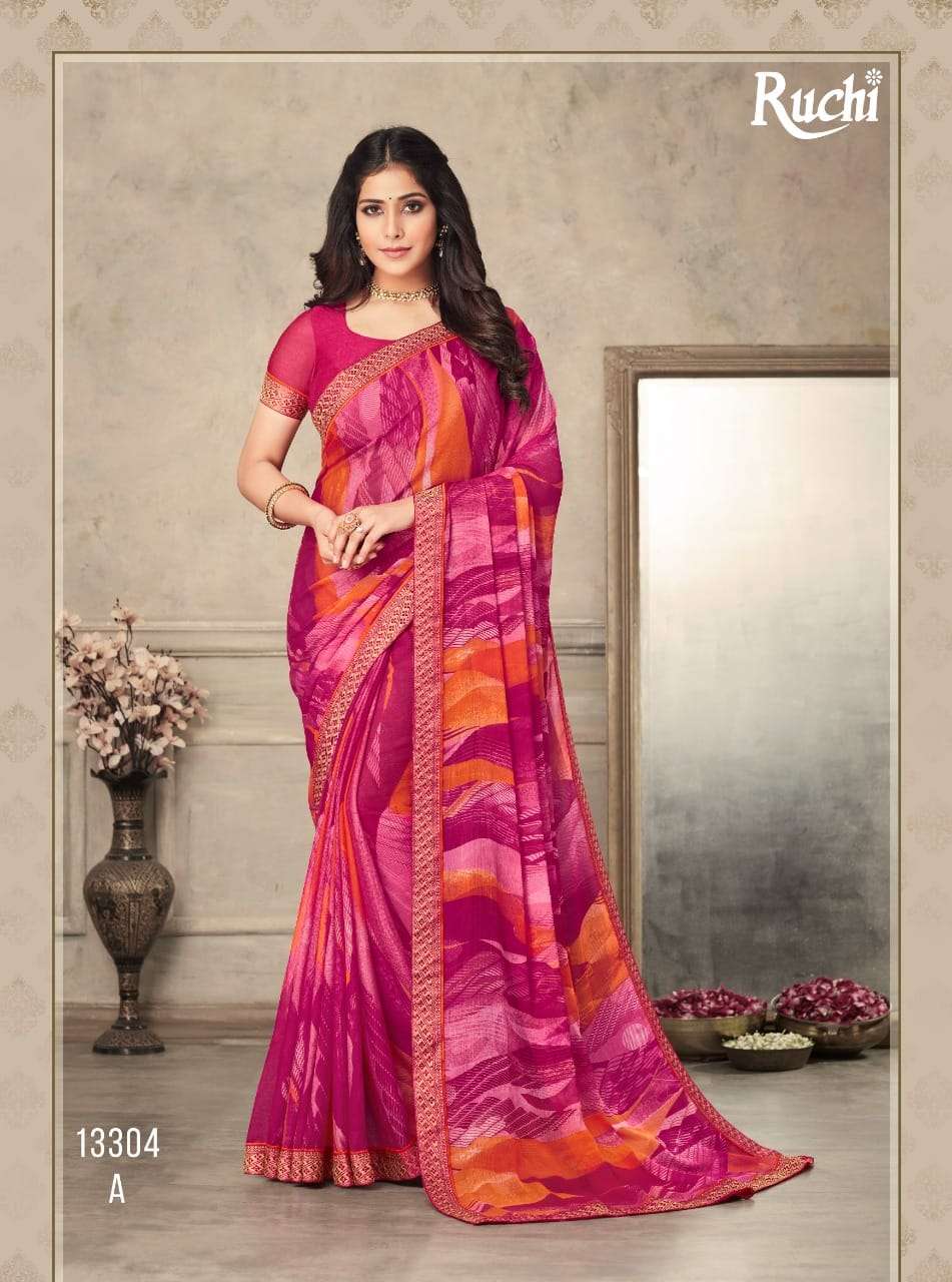 RUCHI PRESENTS SAVERA 10032-10036 COLOURS SERIES CHIFFON DESIGNER SAREES COLLECTION AT WHOLESALE PRICE N353