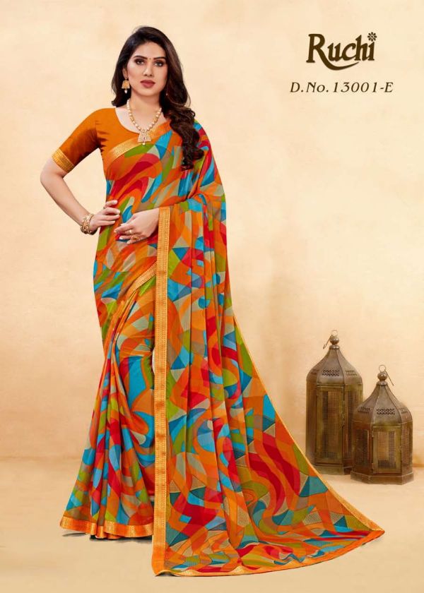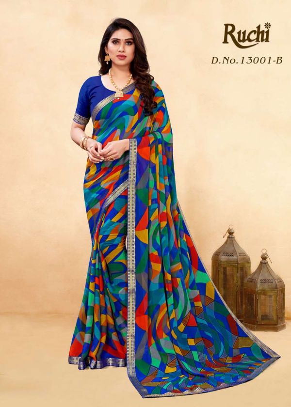 Ruchi Presents Simayaa 13001a-13001f Series Chiffon With Attached Banarsi Border Fancy Saree Collection