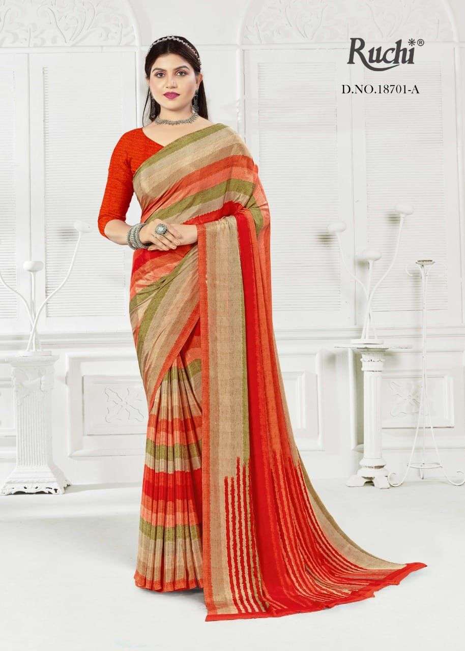 RUCHI PRESENTS VIVANTA SILK 18701A-18701F SERIES SILK CREPE SAREES COLLECTION AT WHOLESALE PRICE N354