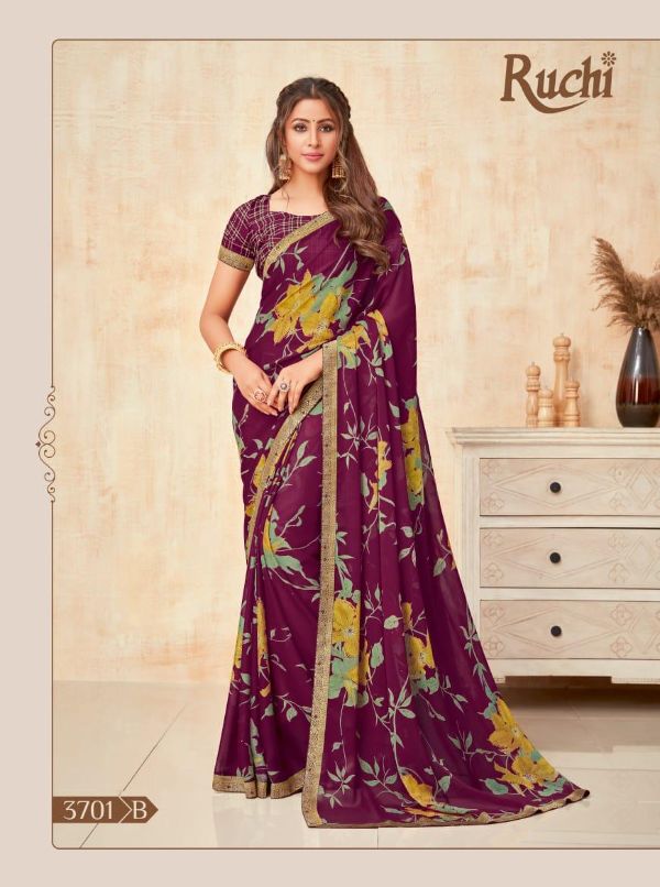 Ruchi Presents Yashika 3701a - 3706b Series Silk Georgette Fancy Saree Collection#1807