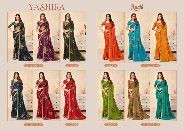Catalogue: Ruchi Presents Yashika 3701a - 3706b Series Silk Georgette Fancy Saree Collection#1807