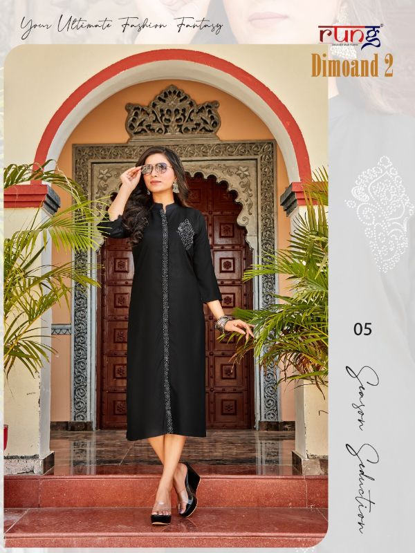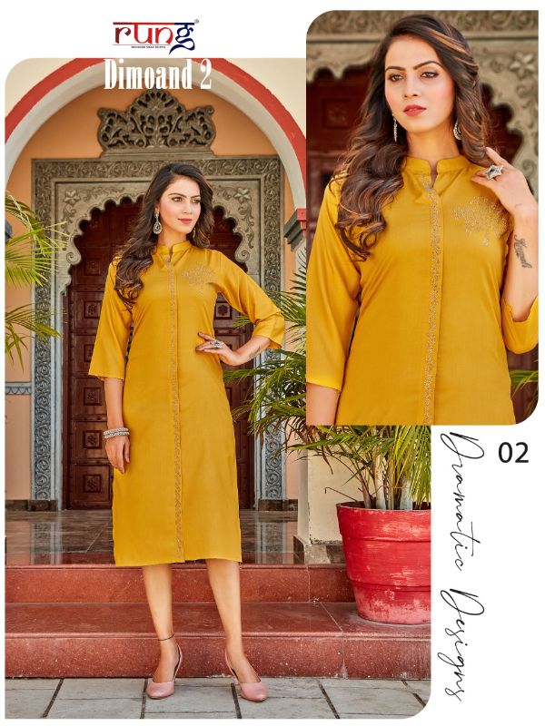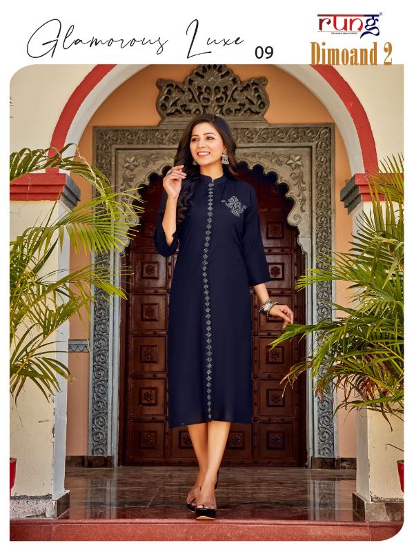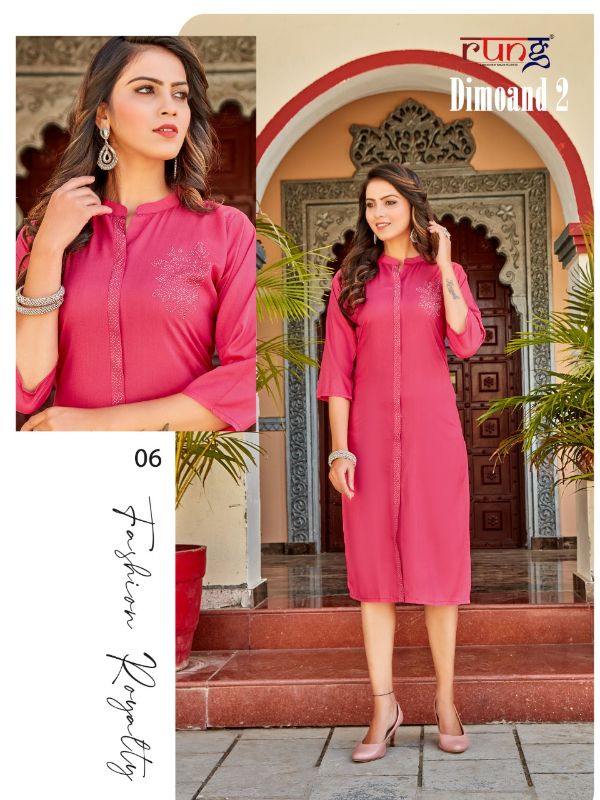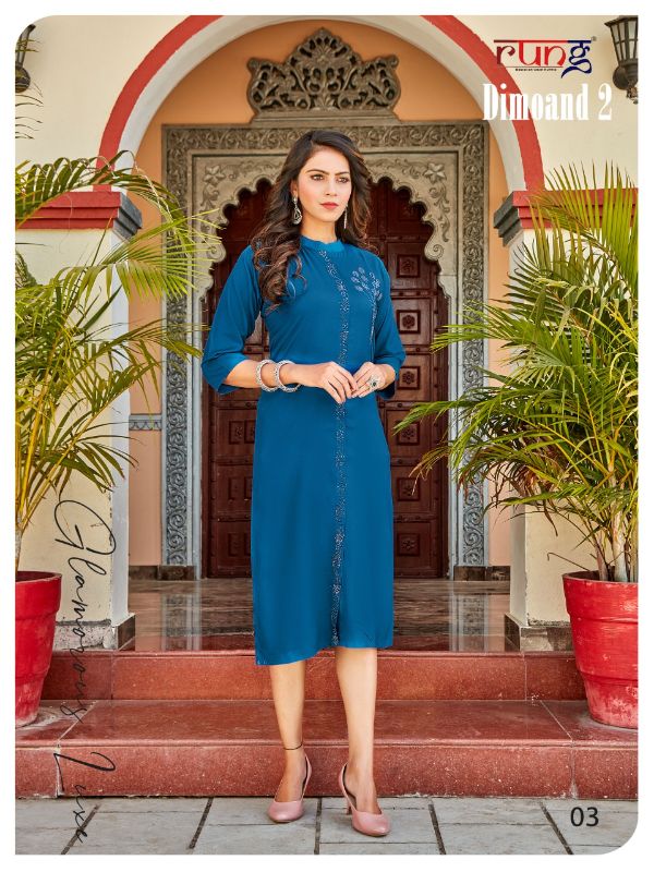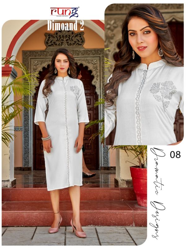 Rung Presents Diamond Vol-2 01-08 Series Rayon With Diamond Work Kurti Collection