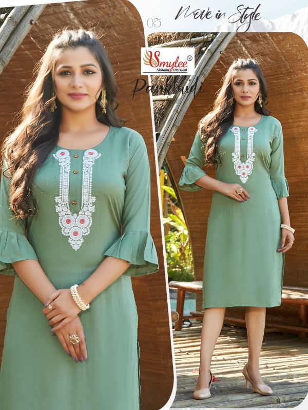 Rung Presents Pankhudi Heavy Slub Rayon With Manual Neck Embroidery Kurti Collection