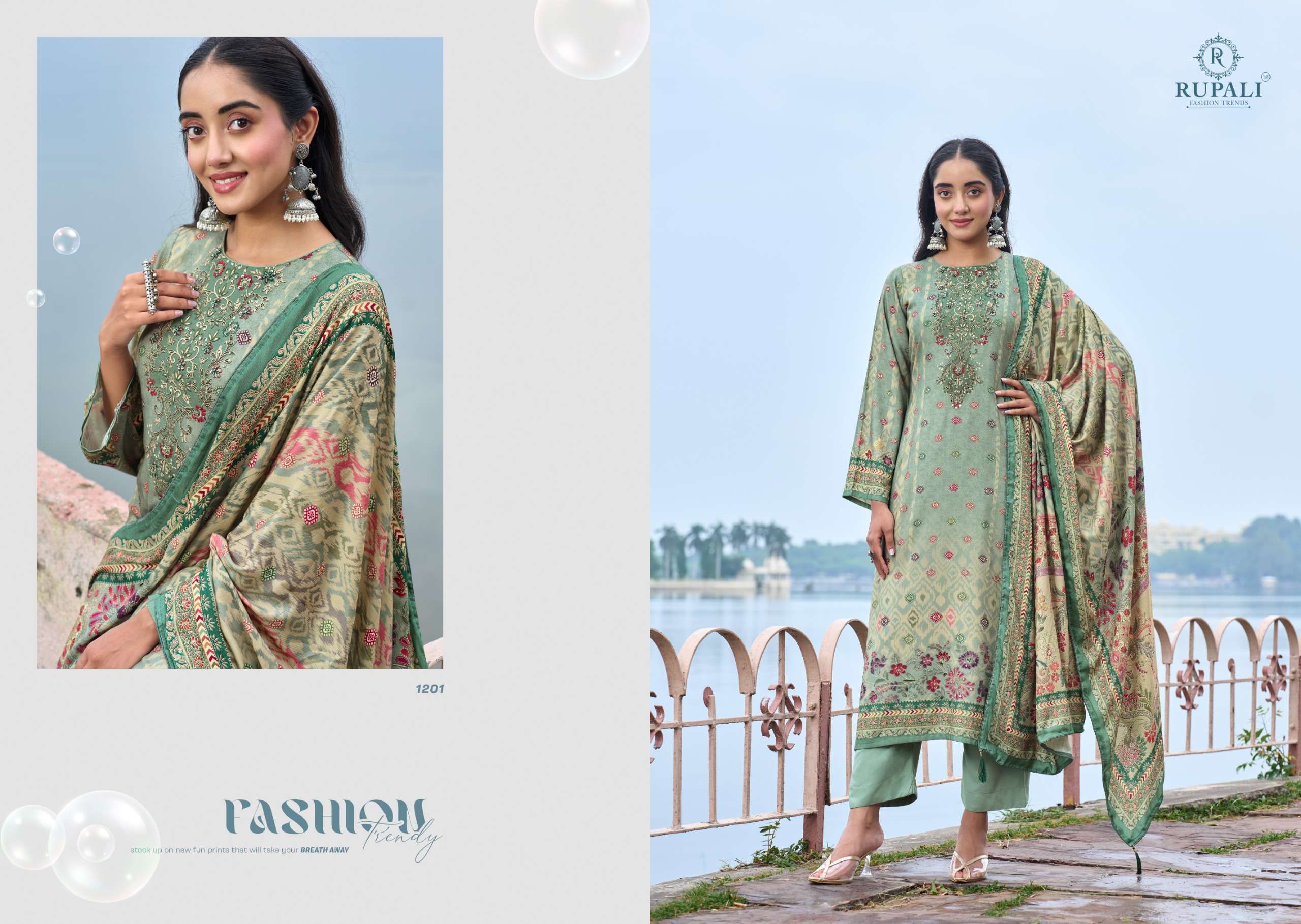 | Catalogue: | RUPALI FASHION CHAKRI URE VISCOSE PASHMINA SUIT WITH HANDWORK |