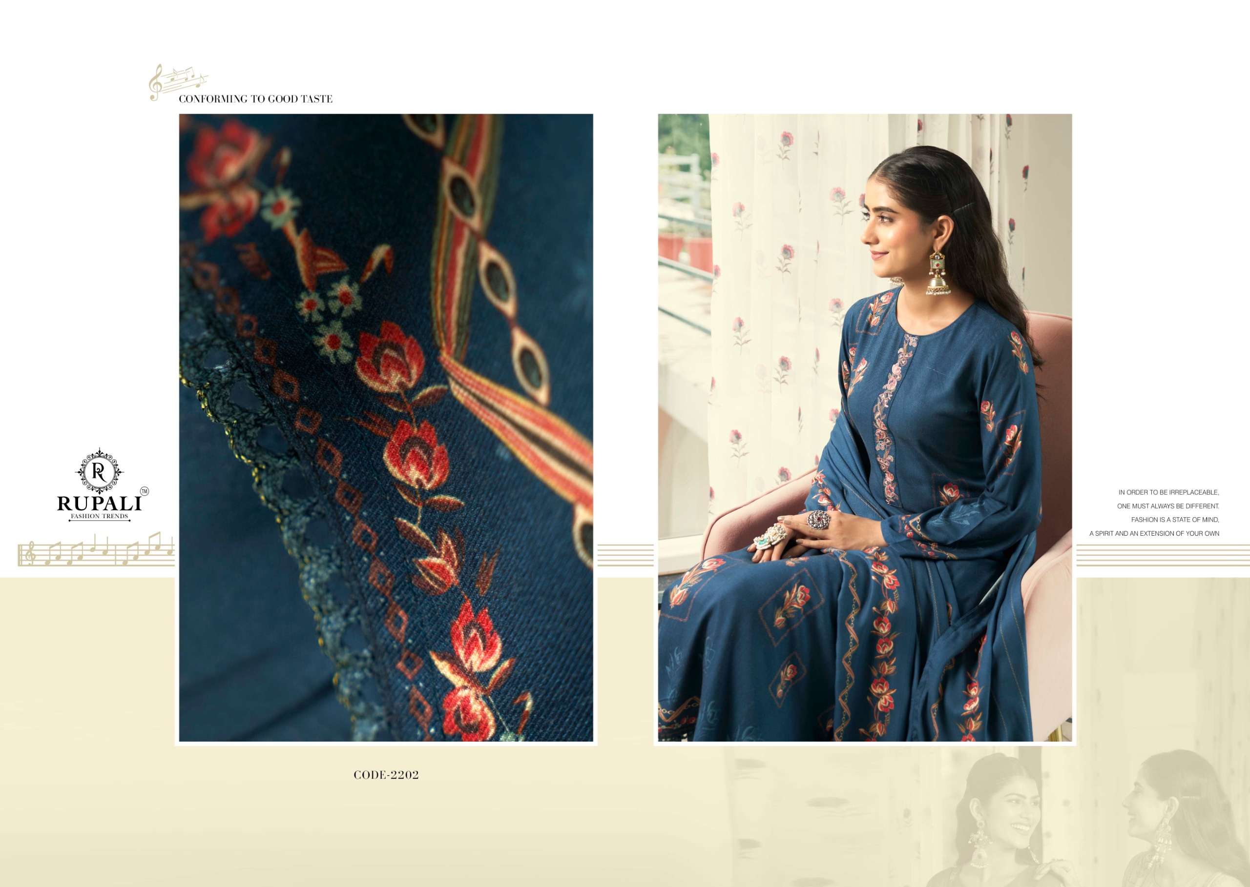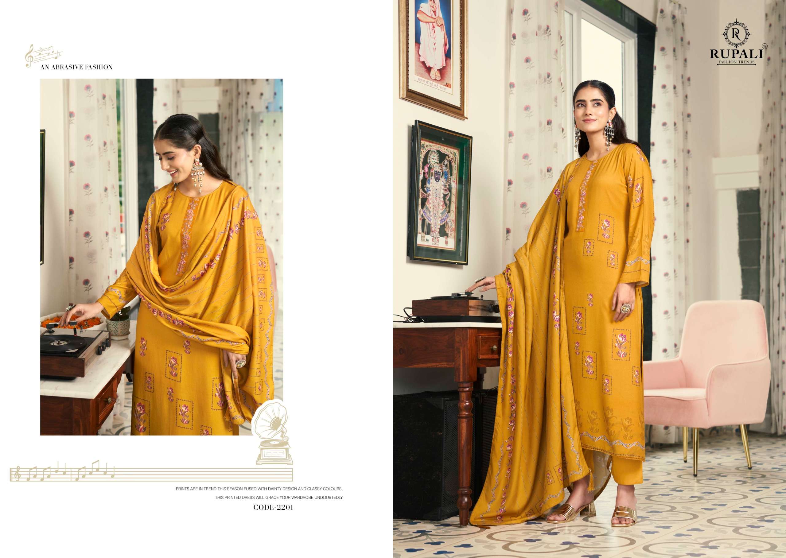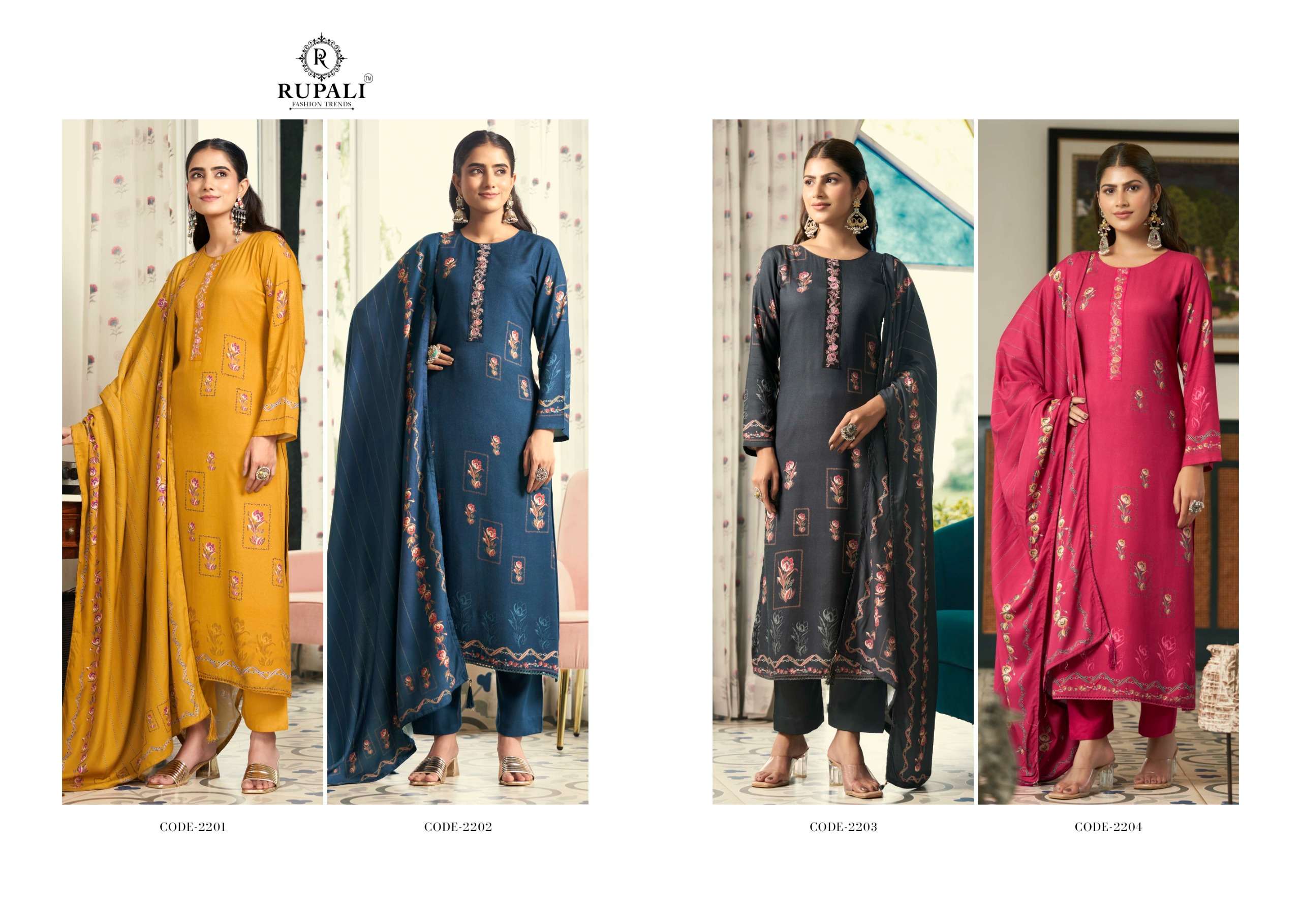 Catalogue: | RUPALI FASHION SANGEETA PURE VISCOSE PASHMINA SUIT WITH HANDWORKS |