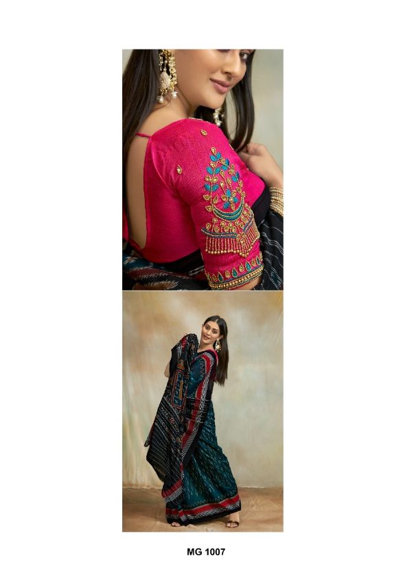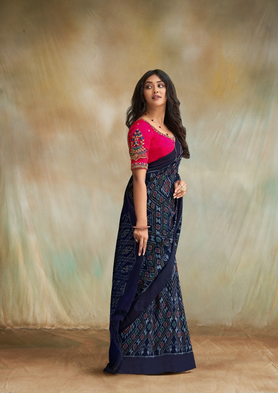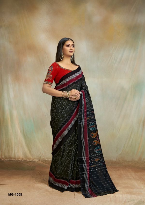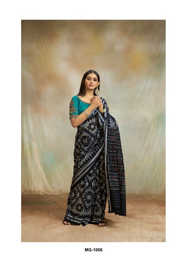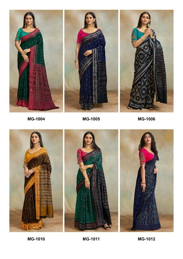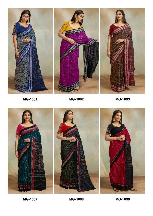 S.r Presents Maggam 1001-1012 Series Mul Mul Cotton Ikkat Print Saree Collection