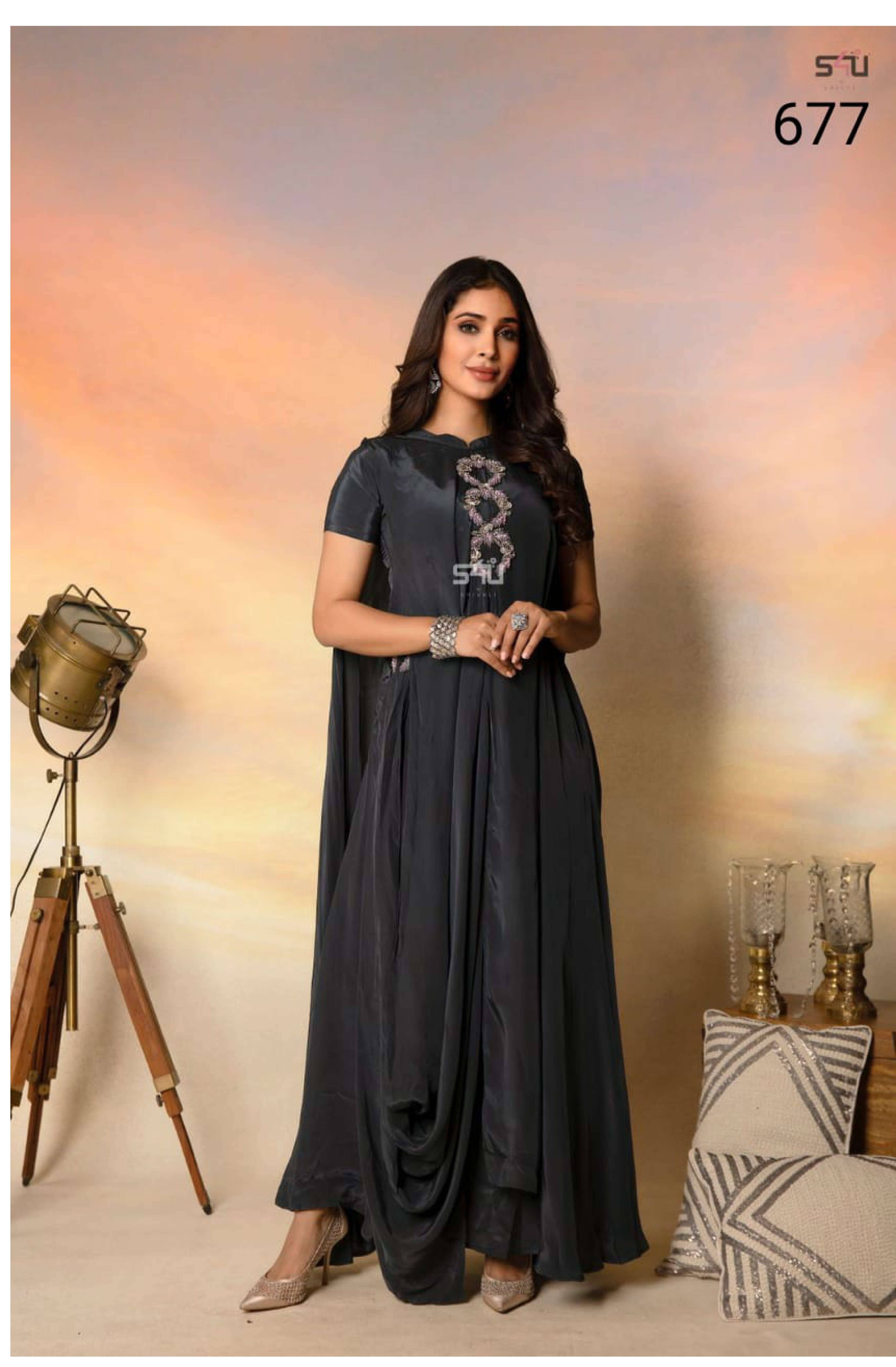S4U PRESENTS 677 DESIGN BLACK DESIGNER KURTIS WESTERN COLLECTION AT WHOLESALE PRICE N371