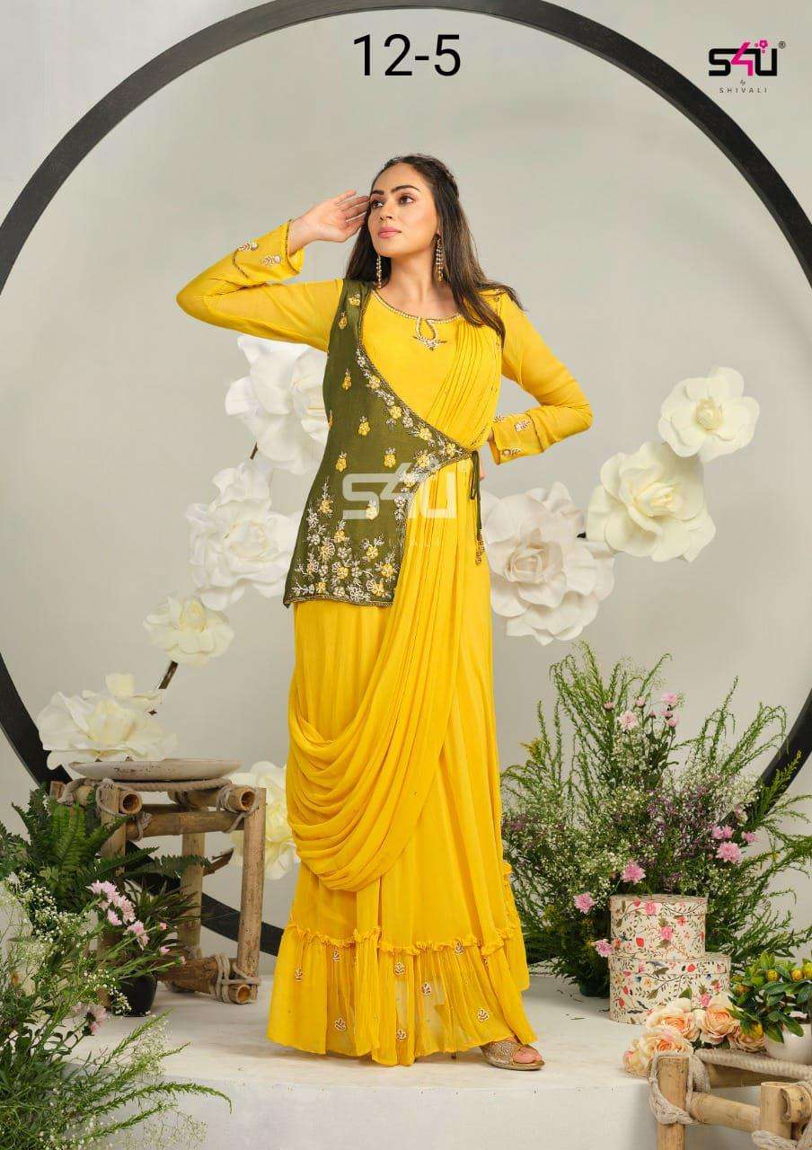 S4U PRESENTS SHIVALI 12-5 DESIGN YELLOW DESIGNER SAREES HALDI SPECIAL COLLECTION AT WHOLESALE PRICE N371