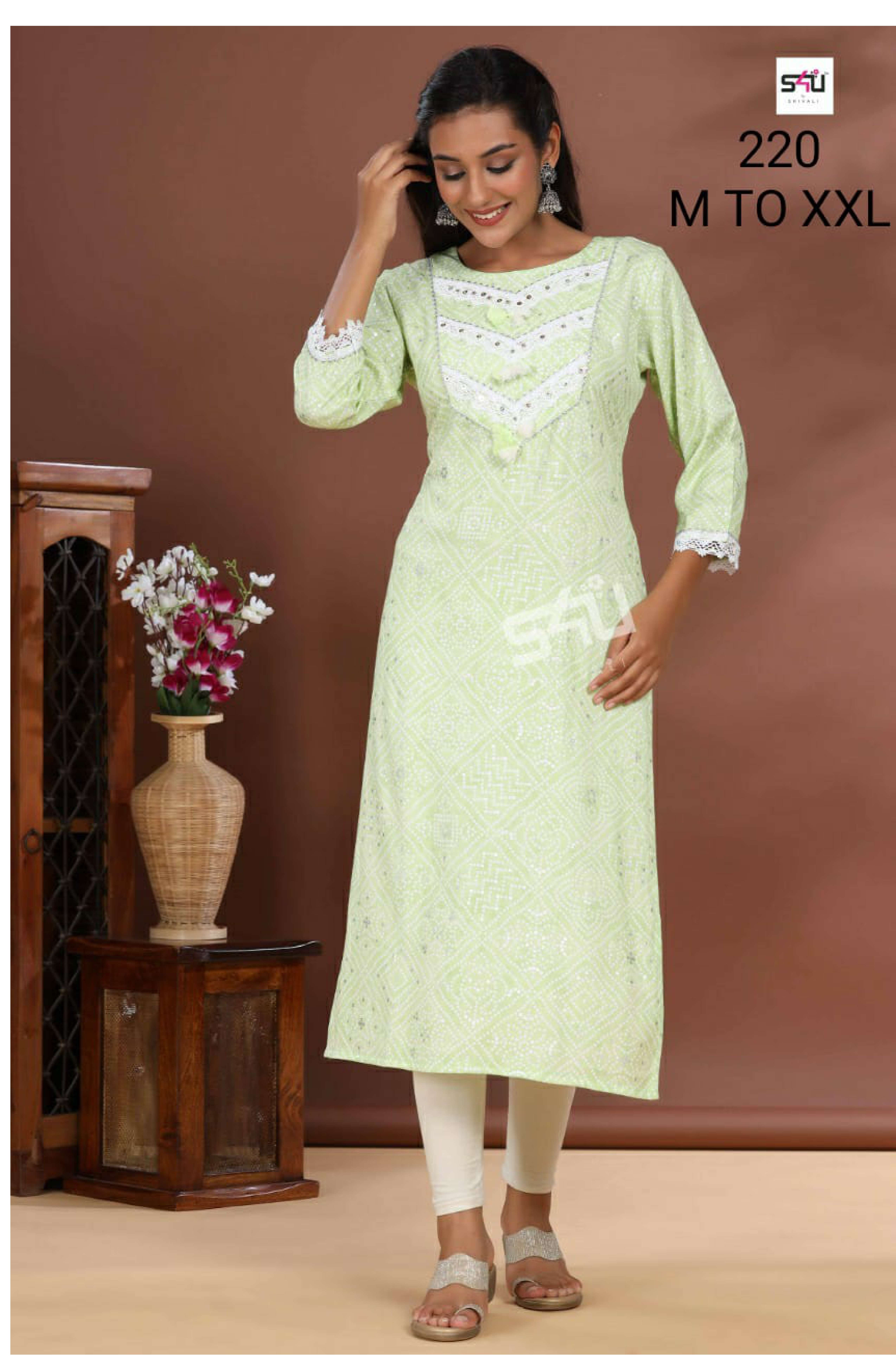 S4U PRESENTS SHIVALI 220 DESIGN FANCY STRAIGHT KURTIS COLLECTION AT WHOLESALE PRICE N371