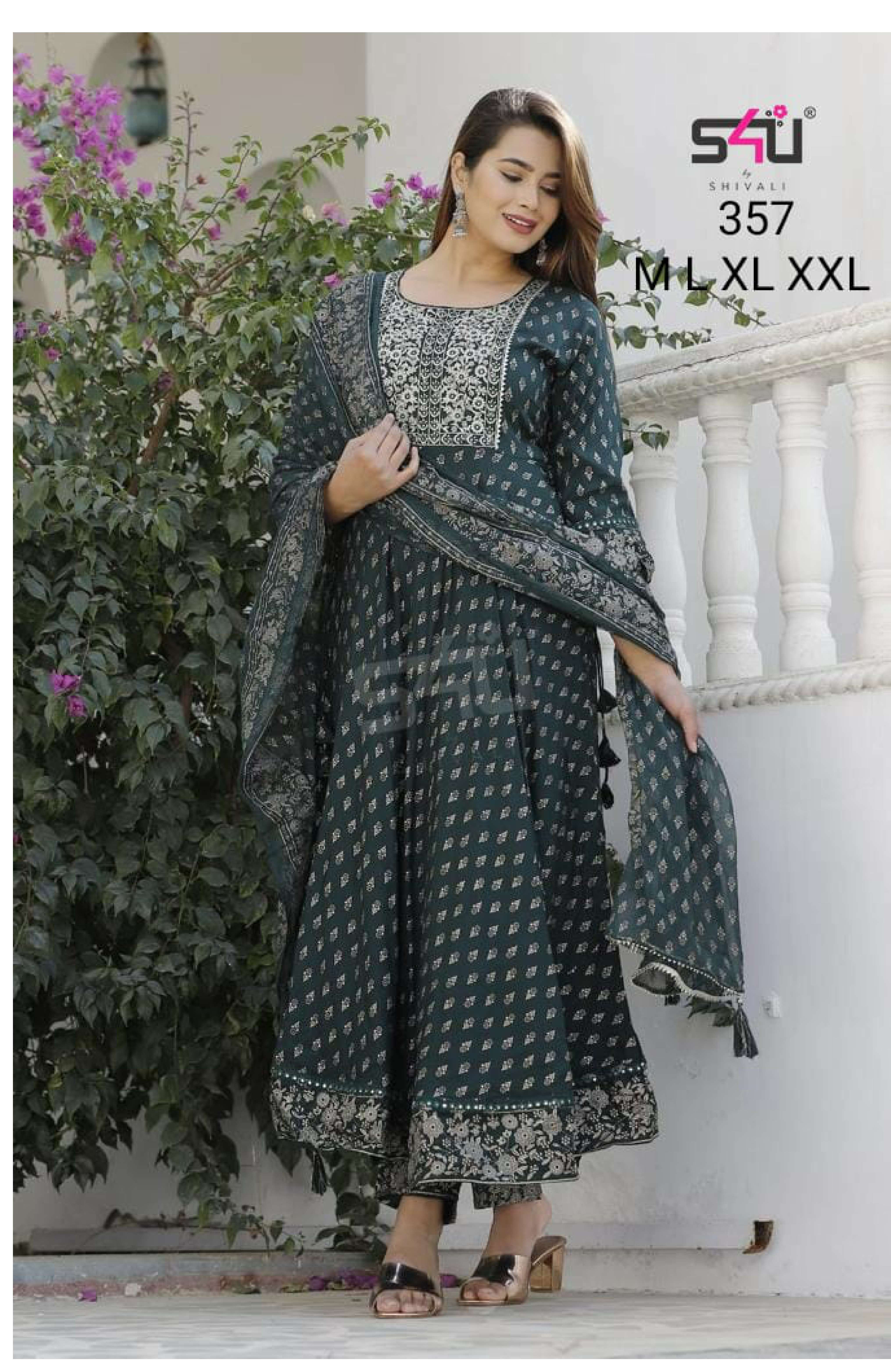 S4U PRESENTS SHIVALI 357 DESIGN FLAIR STYLE KURTIS BOTTOM WITH DUPATTA SET AT WHOLESALE PRICE N371