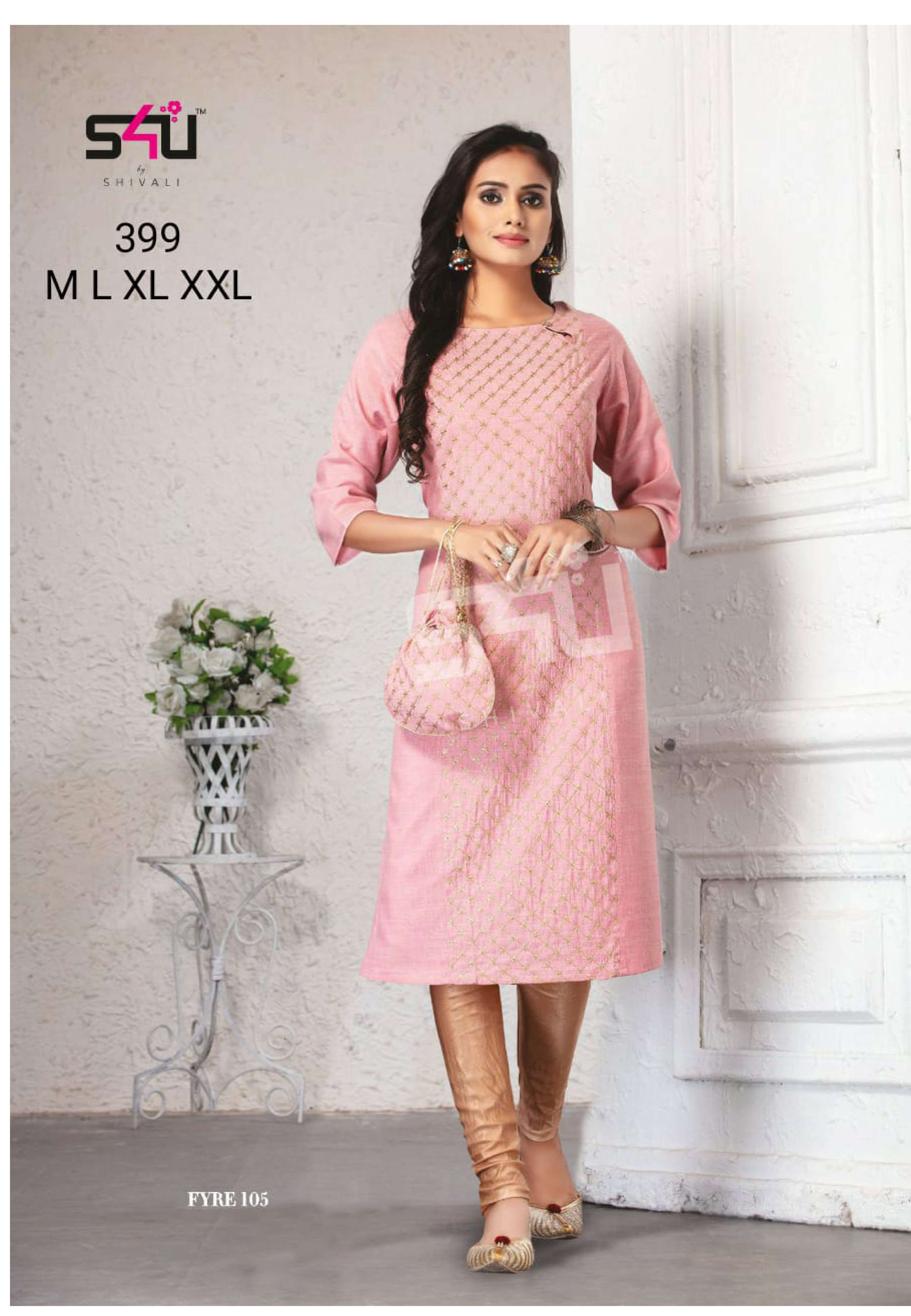 S4U PRESENTS SHIVALI 399 DESIGN FANCY PINK KURTIS WITH POTLI BAG COLLECTION AT WHOLESALE PRICE N371