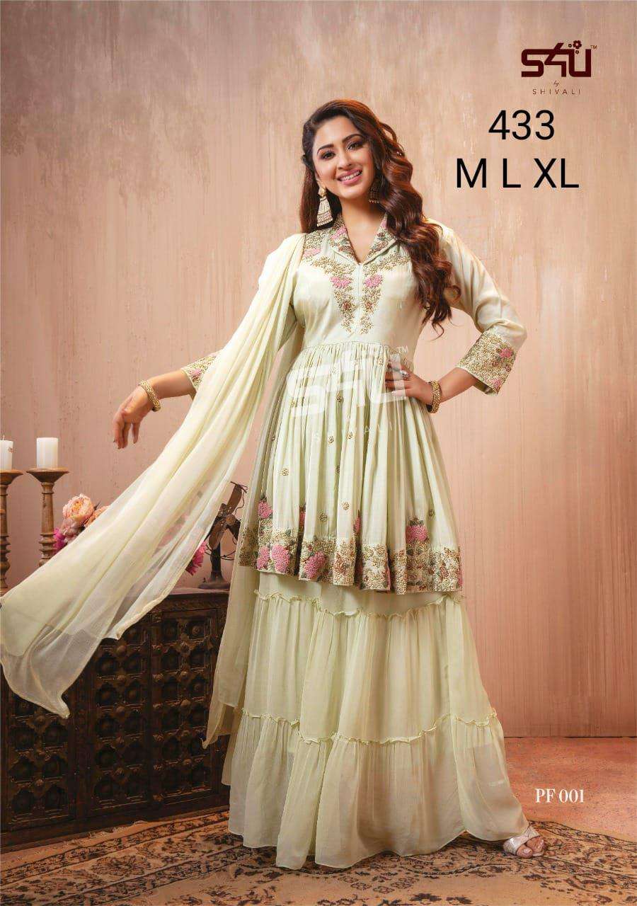 S4U PRESENTS SHIVALI 433 EXCLUSIVE PEPLUM STYLE KURTIS SHARARA WITH DUPATTA SET AT WHOLESALE PRICE N371