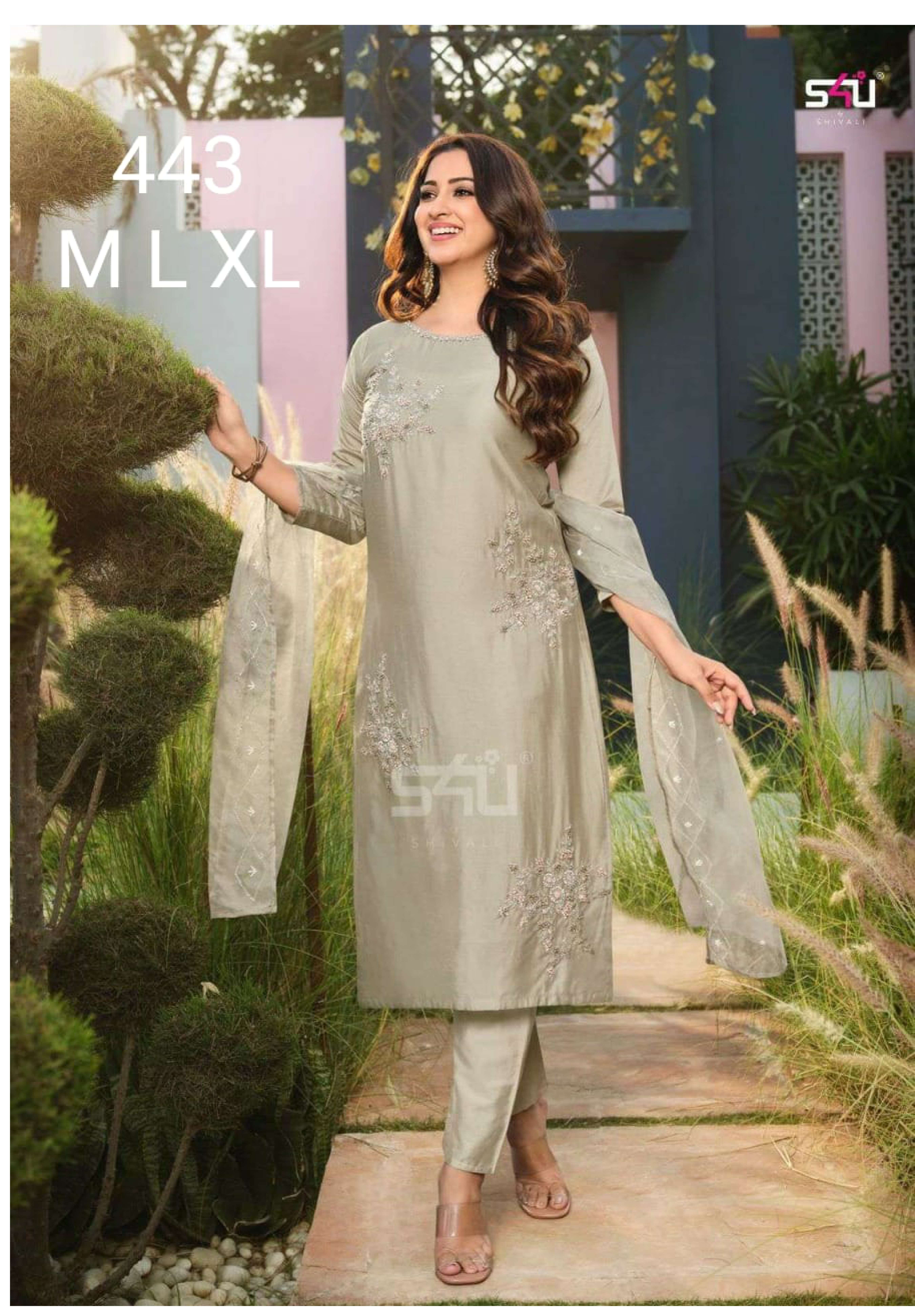 S4U PRESENTS SHIVALI 443 DESIGN FANCY DESIGNER KURTIS WITH PANT AND DUPATTA SET AT WHOLESALE PRICE N371
