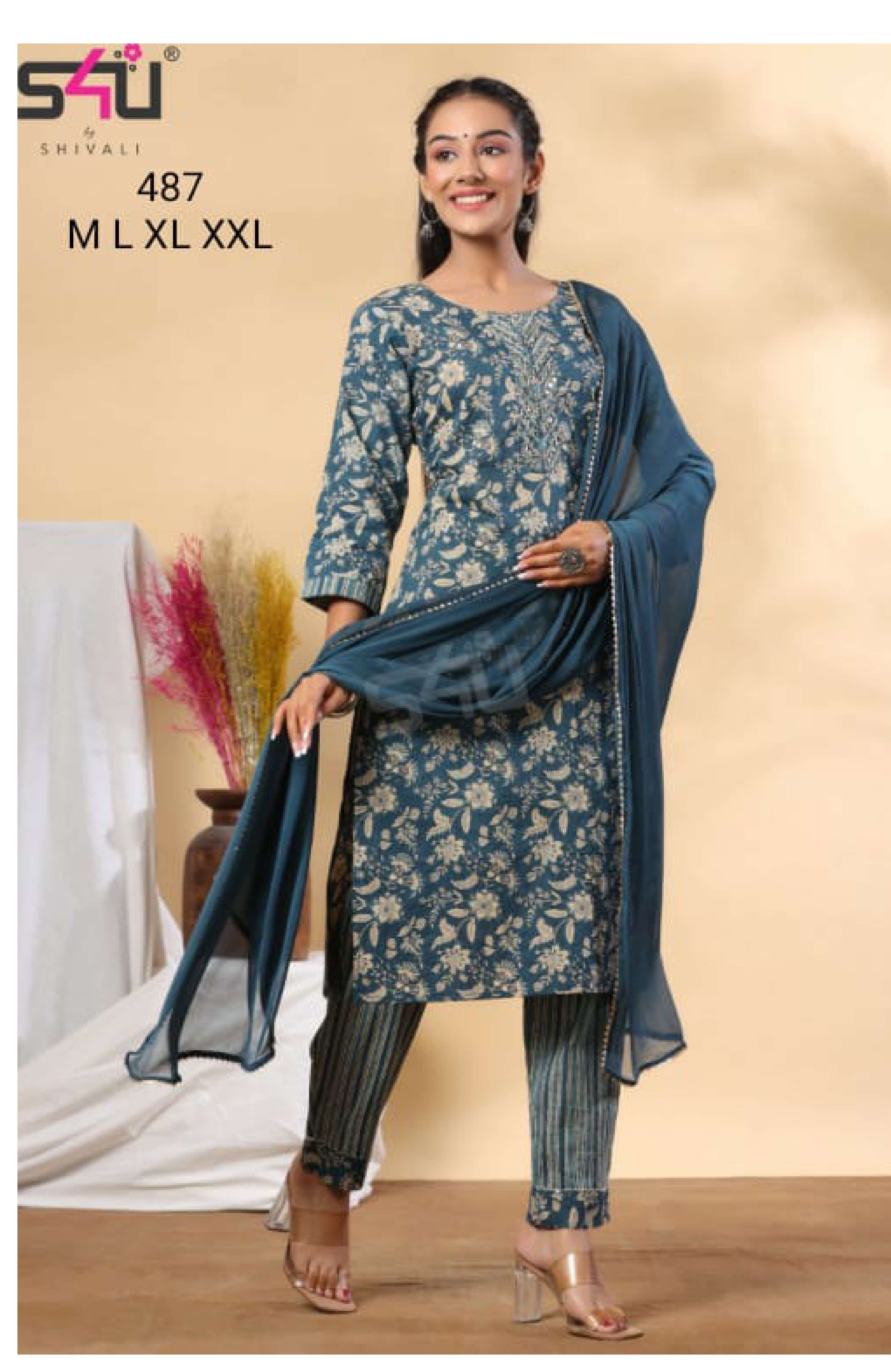 S4U PRESENTS SHIVALI 487 FANCY DESIGNER KURTIS PANT WITH DUPATTA SET WHOLESALE PRICE N371