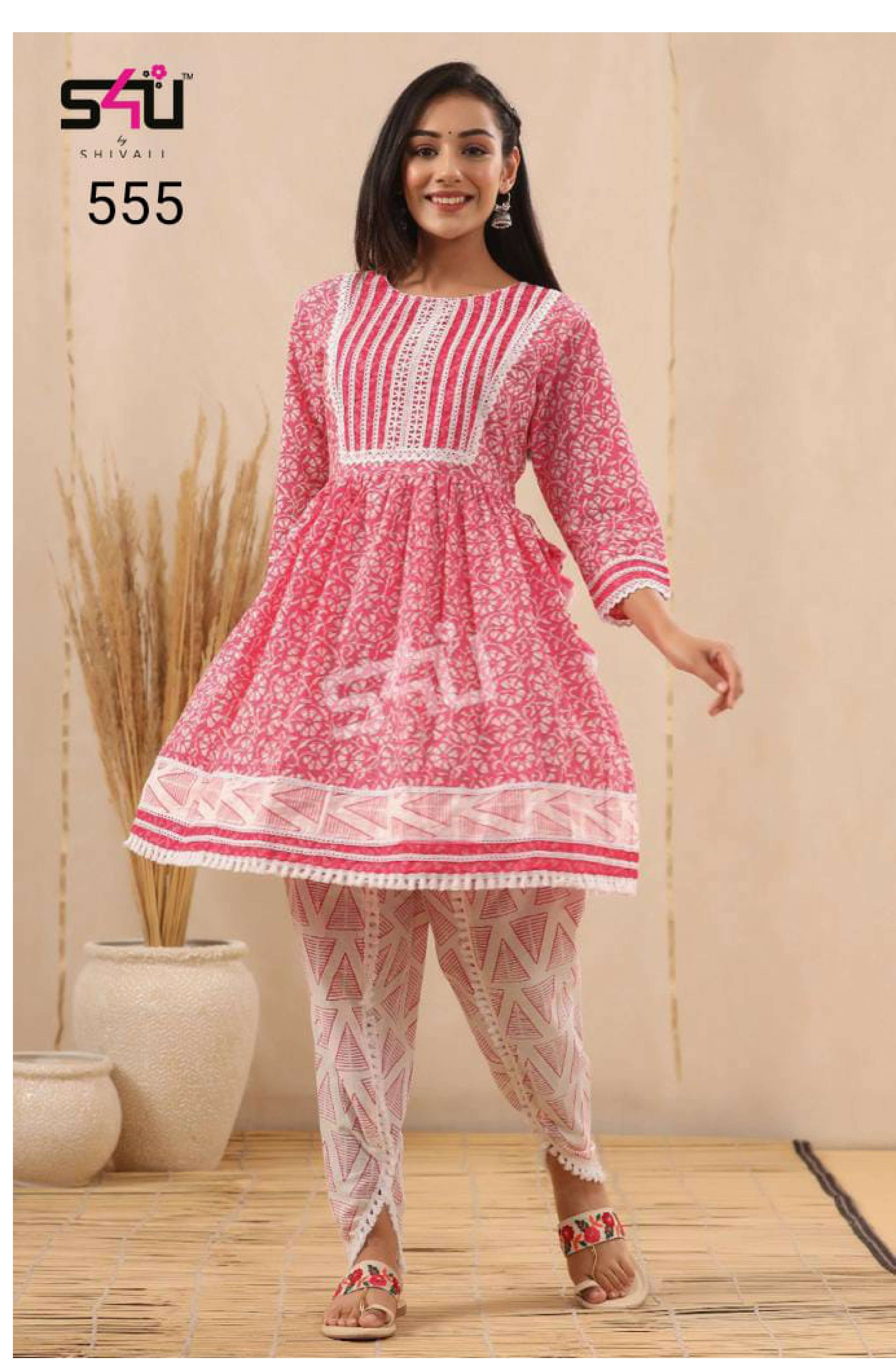 S4U PRESENTS SHIVALI 555 PINK DESIGNER PATIYALA KURTIS COLLECTION AT WHOLESALE RATES N371