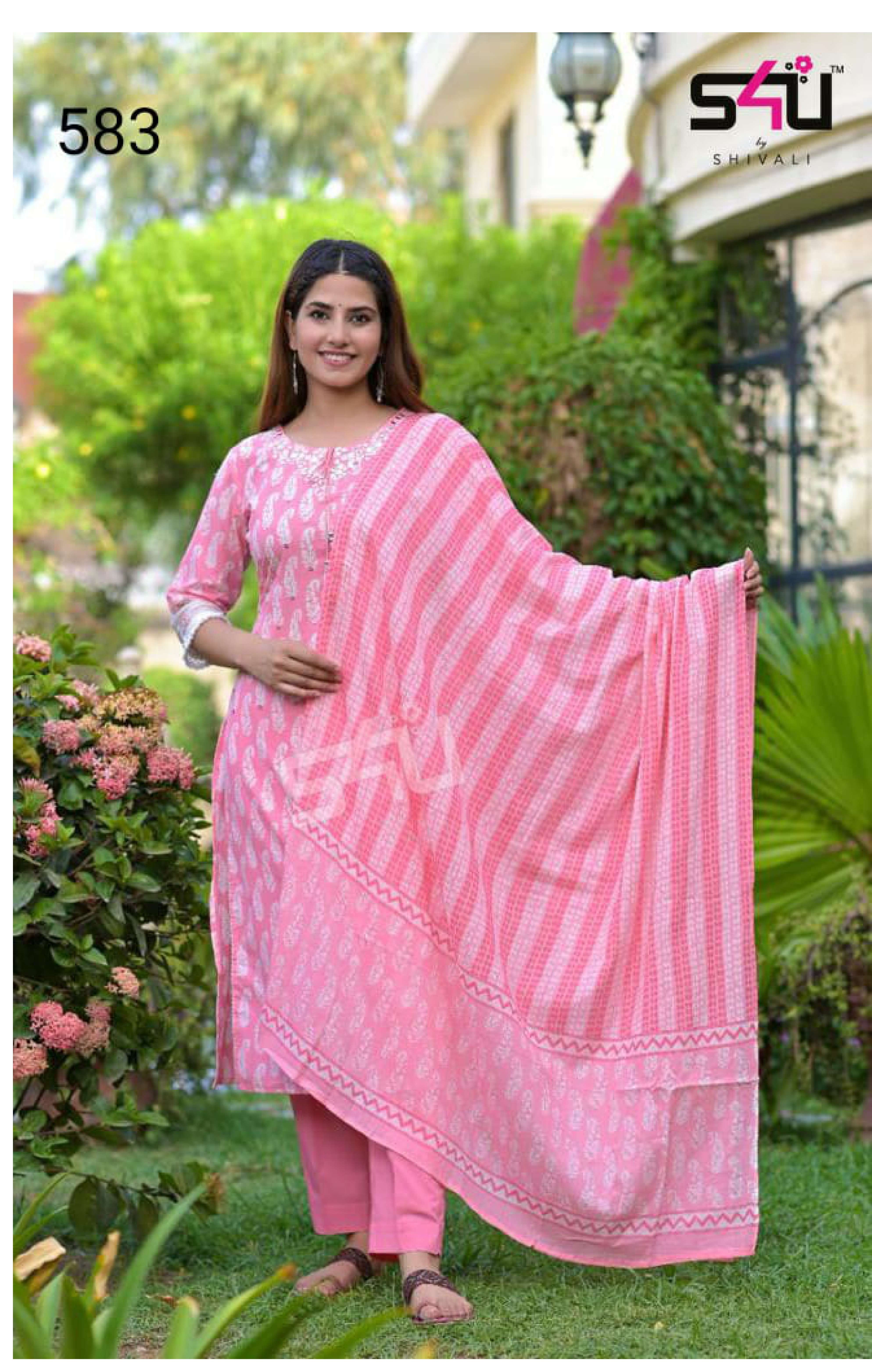 S4U PRESENTS SHIVALI 583 EXCLUSIVE PINK KURTIS PLAZZO WITH DUPATTA SET AT WHOLESALE PRICE N371