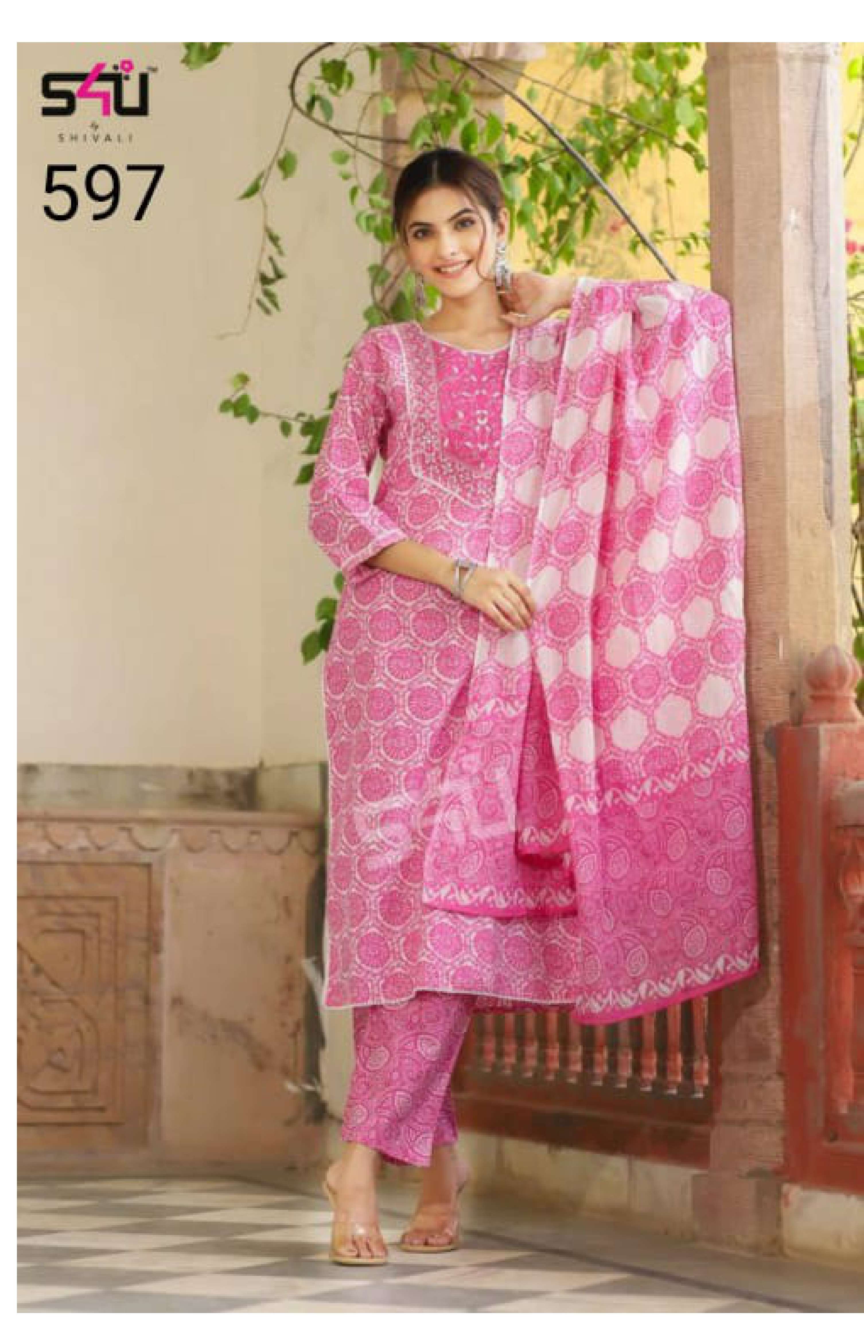 S4U PRESENTS SHIVALI 597 DESIGN FANCY PINK KURTIS WITH PANT WITH DUPATTA SET AT WHOLESALE PRICE N371