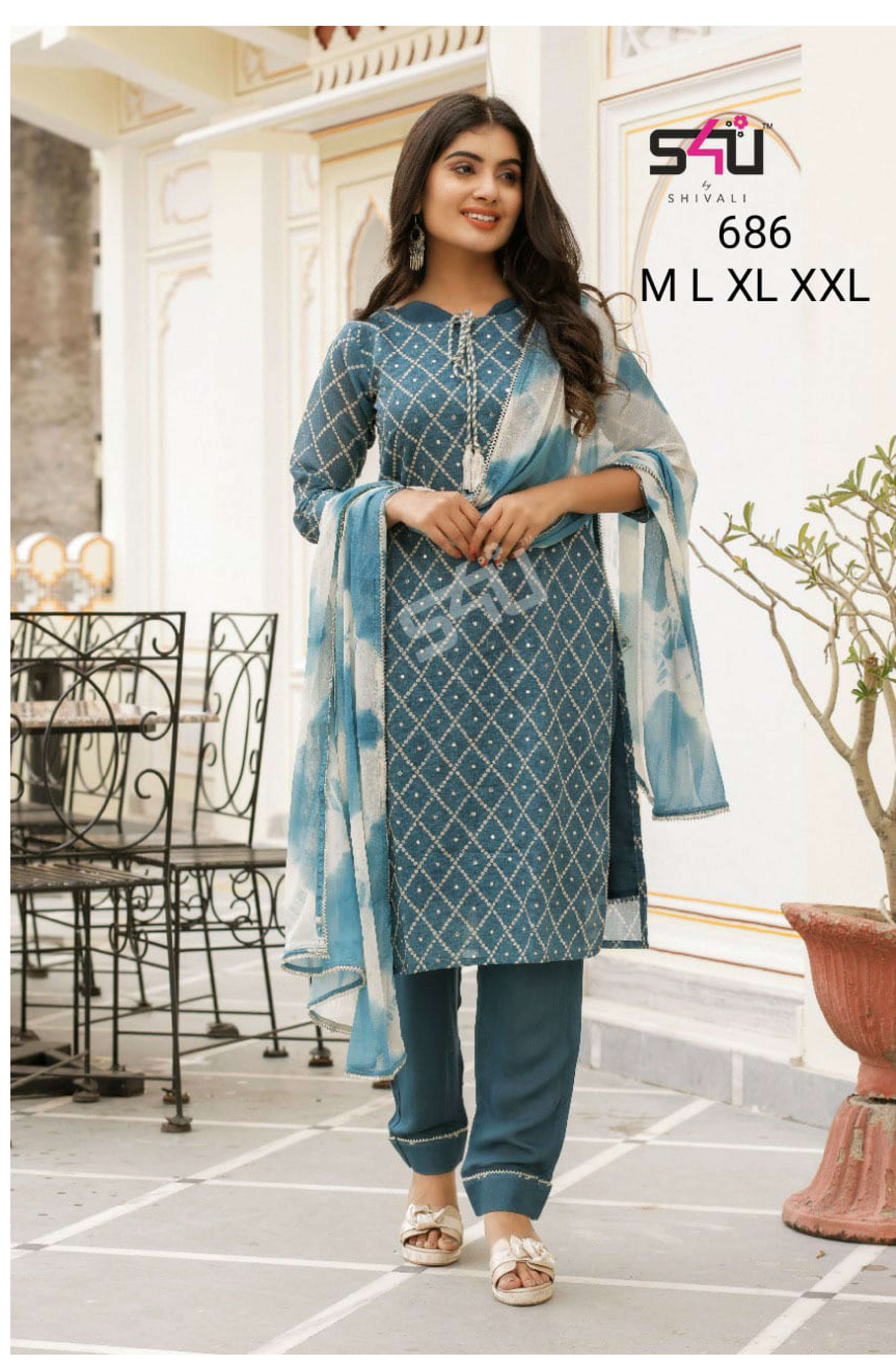 S4U PRESENTS SHIVALI 686 EXCLUSIVE DESIGNER KURTIS WITH PANT WITH DUPATTA SET AT WHOLESALE RATES N371