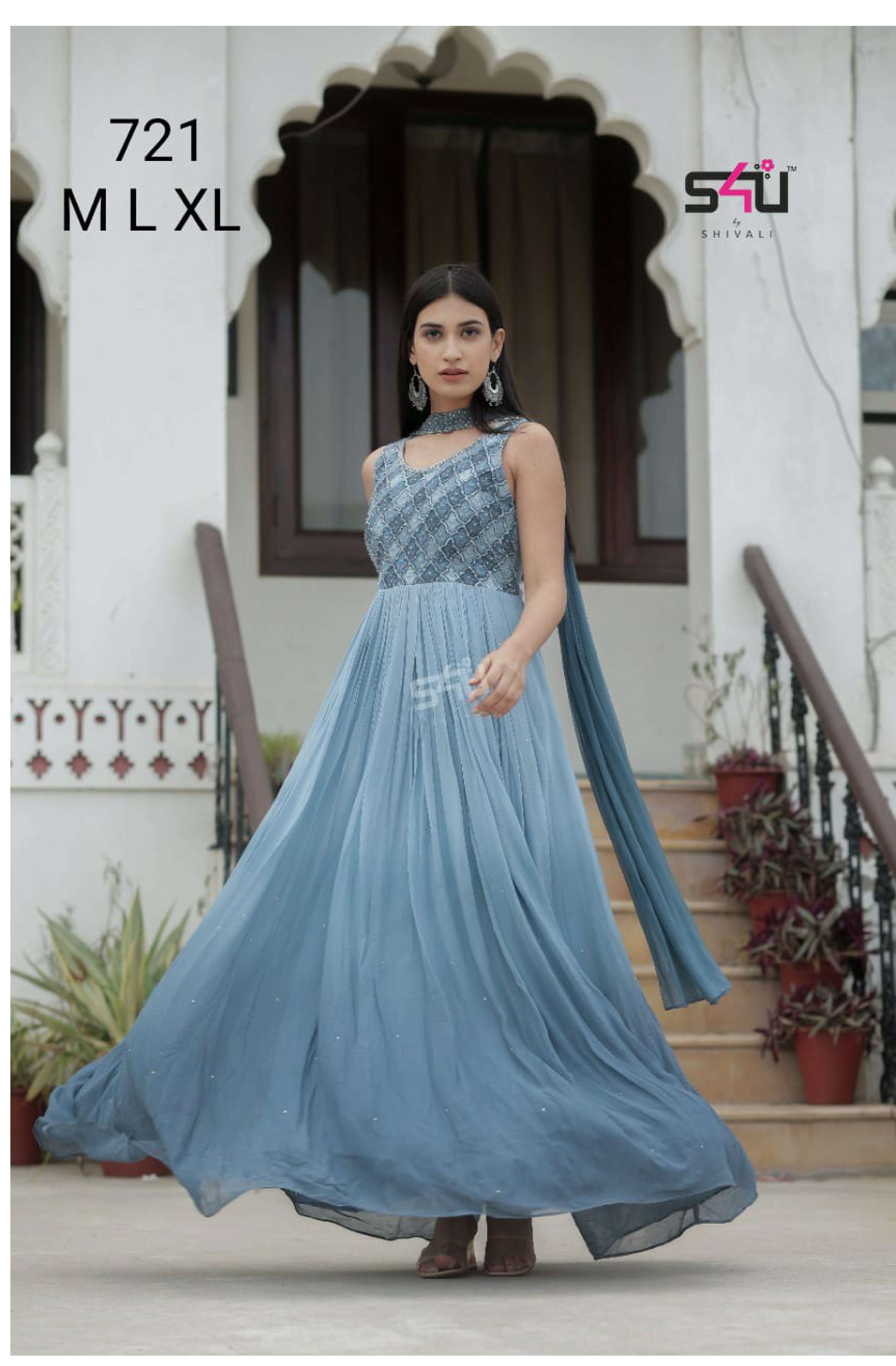 S4U PRESENTS SHIVALI 721 DESIGN SKY BLUE LONG KURTIS WITH DUPATTA SET AT WHOLESALE PRICE N371