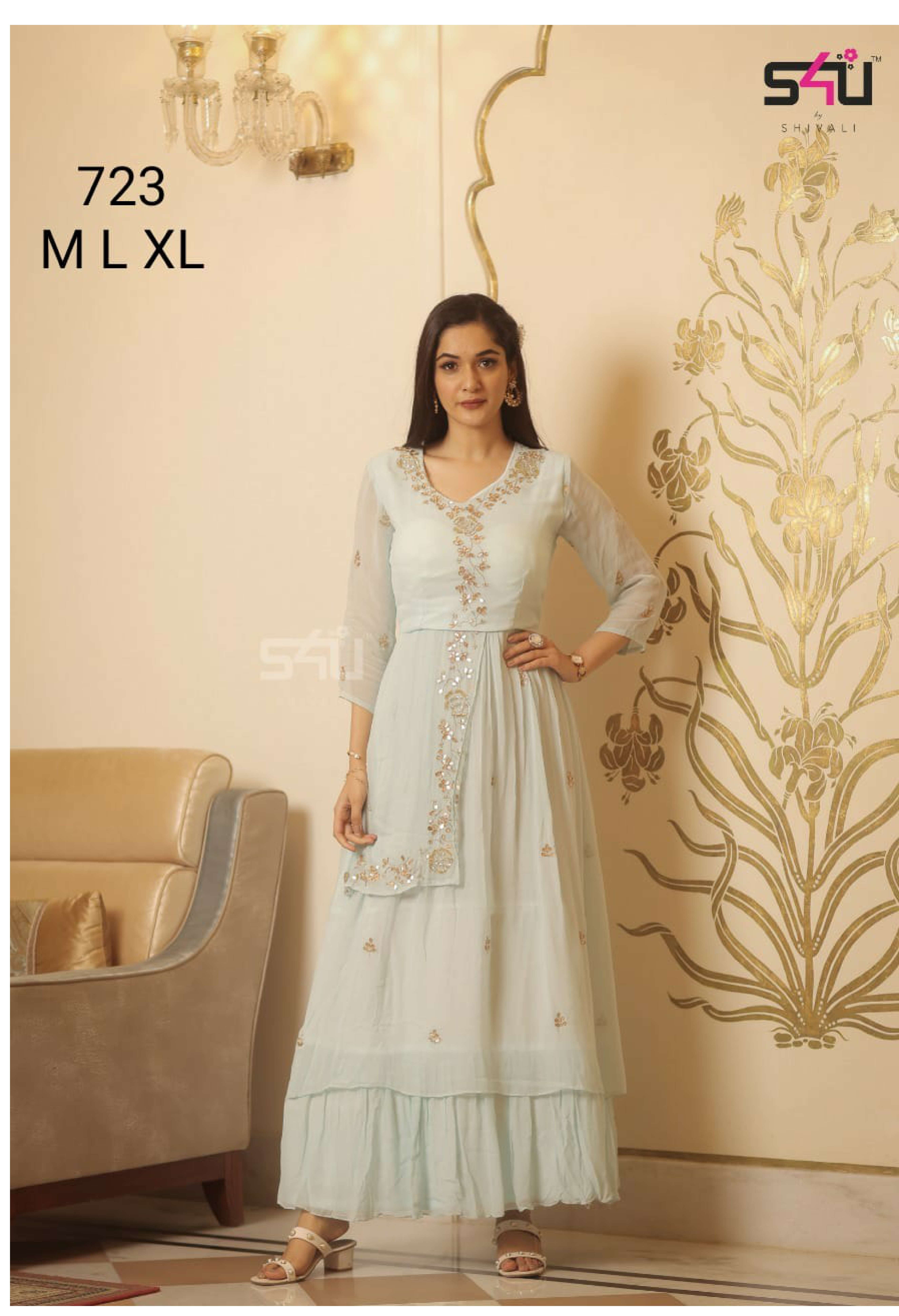 S4U PRESENTS SHIVALI 723 DESIGN WHITE PARTY WEAR KURTIS COLLECTION AT WHOLESALE PRICE N371
