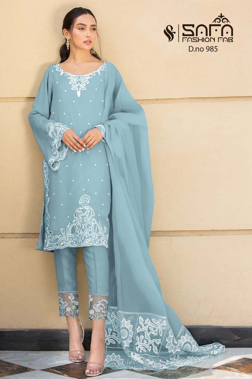 Safa Fashion Fab Presents 985 Pure Georgette With Fancy Designer Work Beautiful Party Wear Salwar Kameez Collection