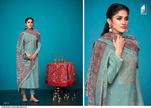Sahiba Presents Bahar Russian Silk With Fancy Embroidery And Lace Work Fancy Salwar Kameez Collection