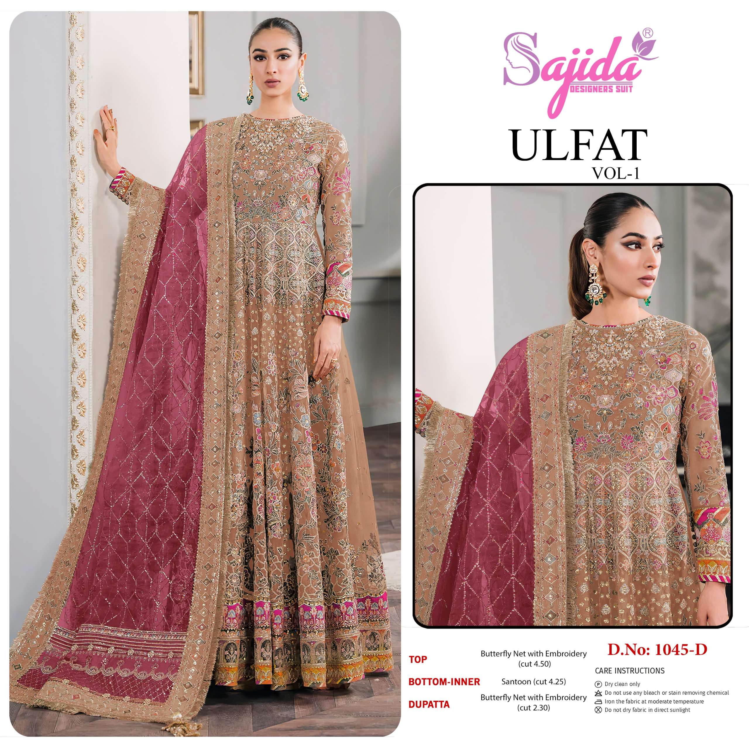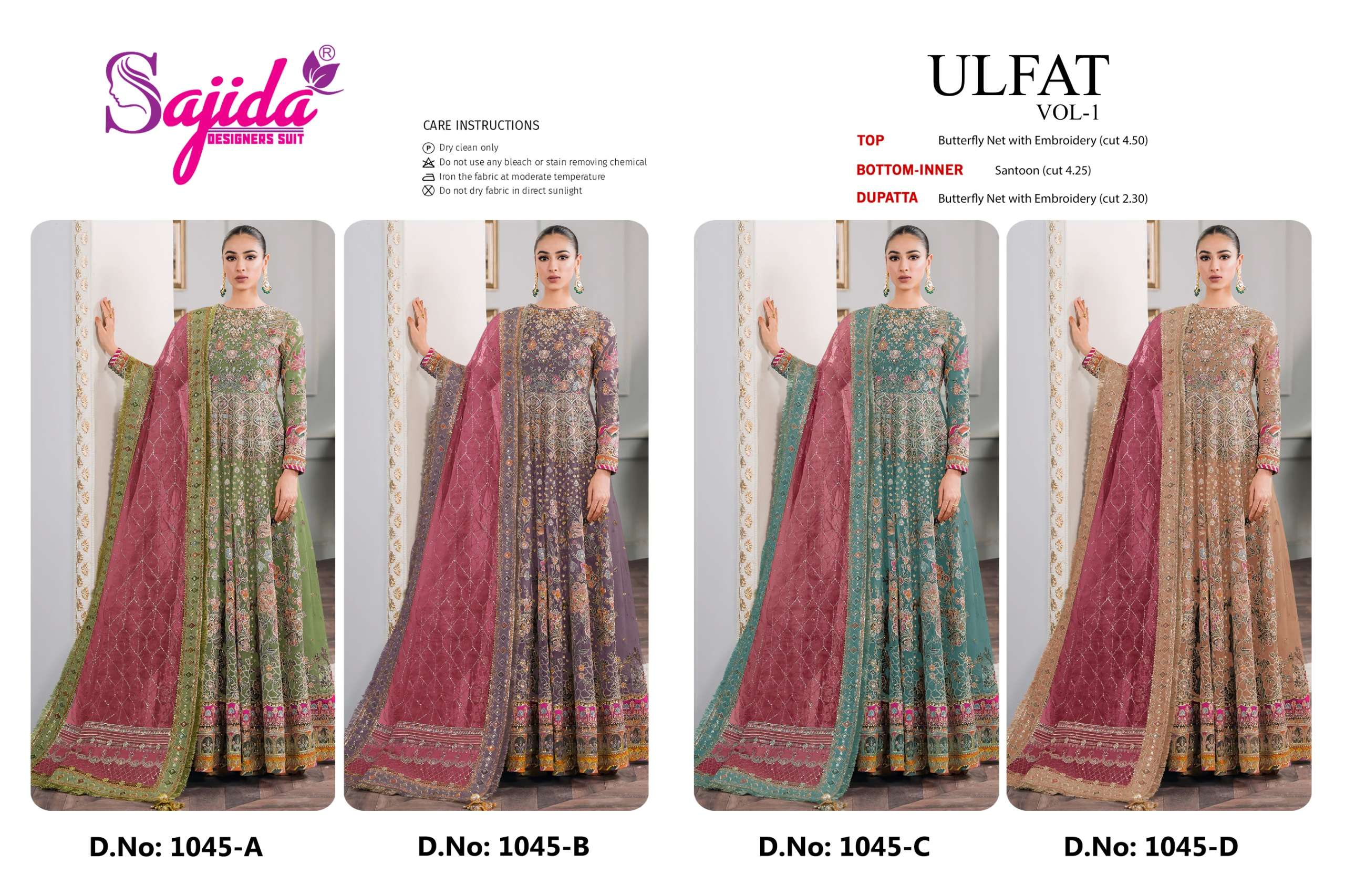 Catalogue: | SAJIDA DESIGNER ULFAT VOL 1 1045 ABCD NET EMBROIDERED SUITS |