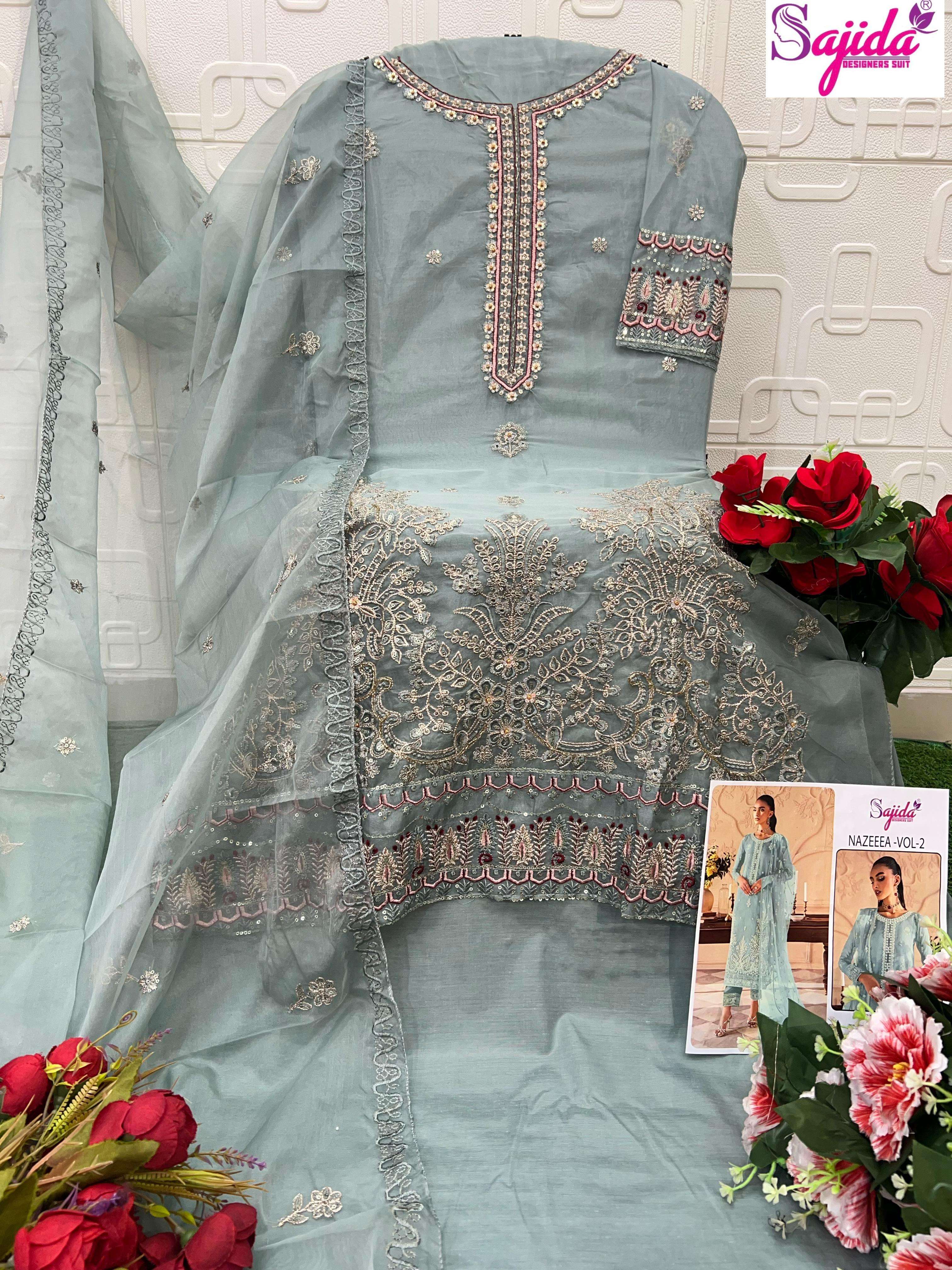 | Catalogue: | Sajida NAZEEEA VOL 2 Organza Pakistani Suit with Embroidery & Khatli Work |