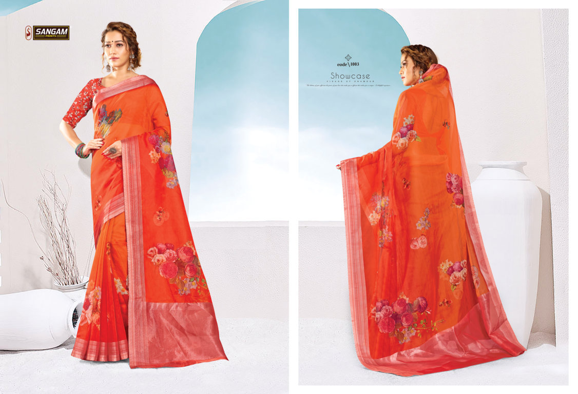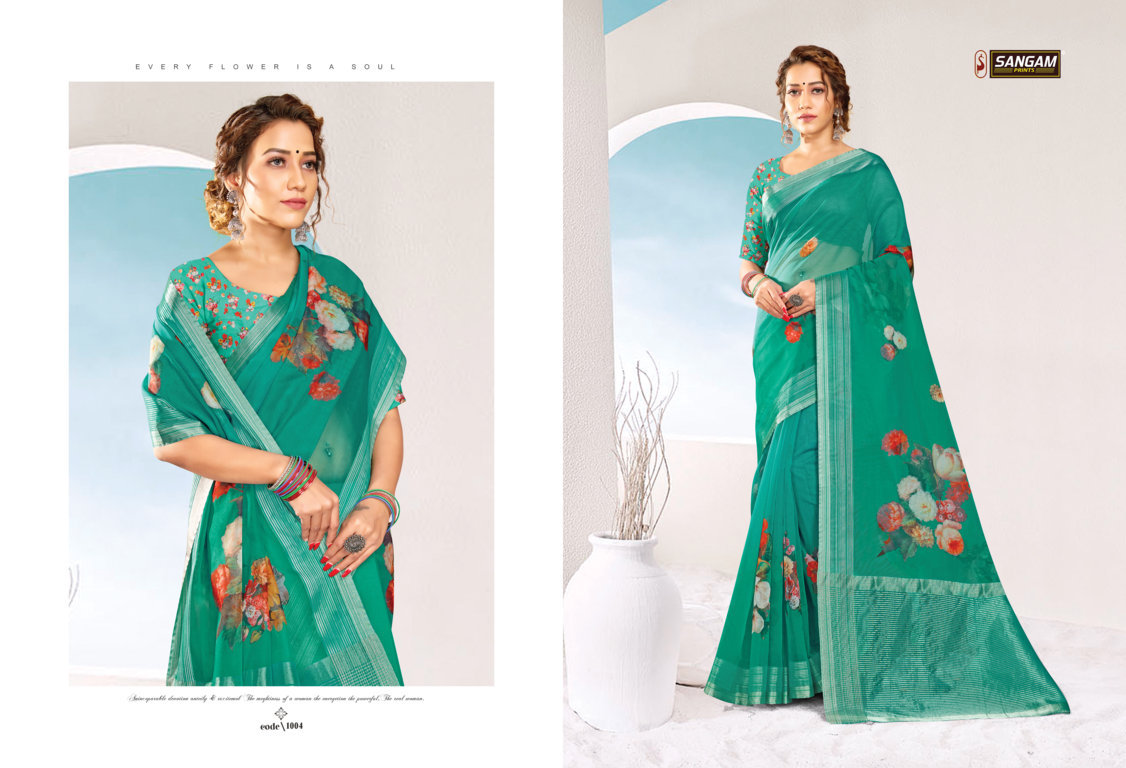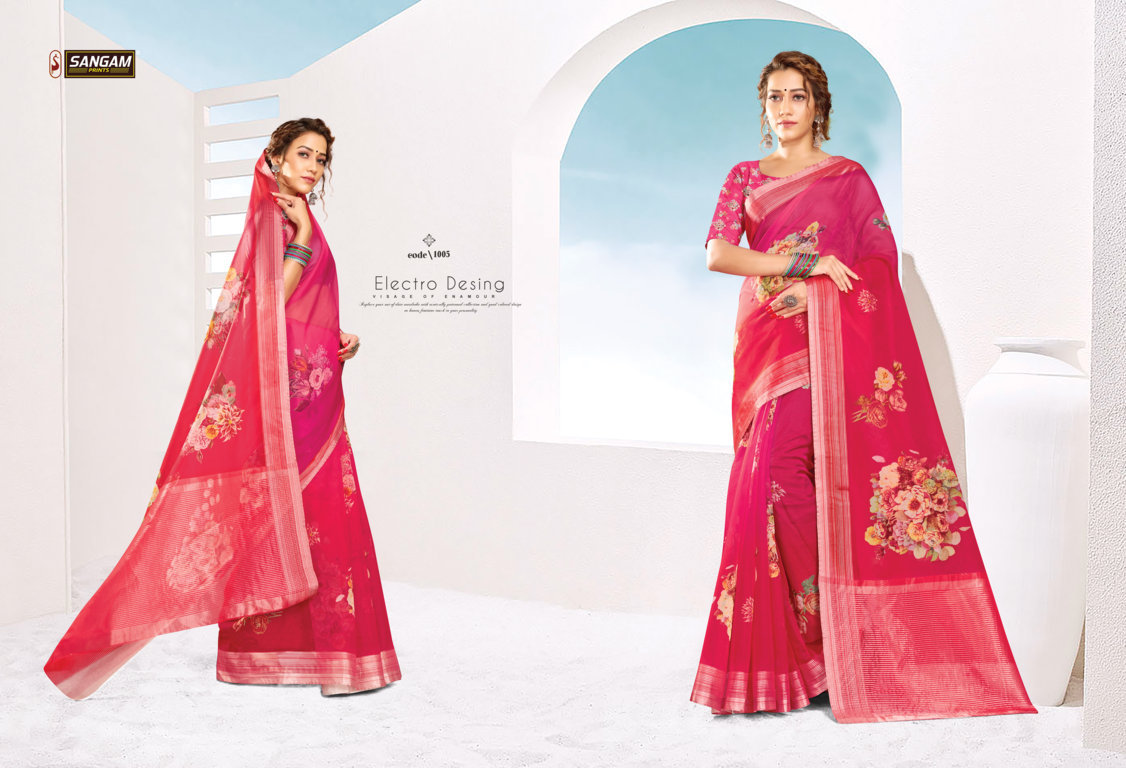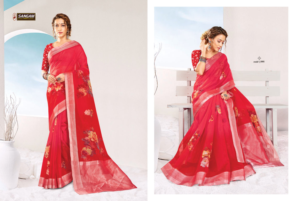 Sangam Presents Aaina 1001 - 1006 Series Beautiful Organza With Fancy Colours Casual Wear Saree Collection