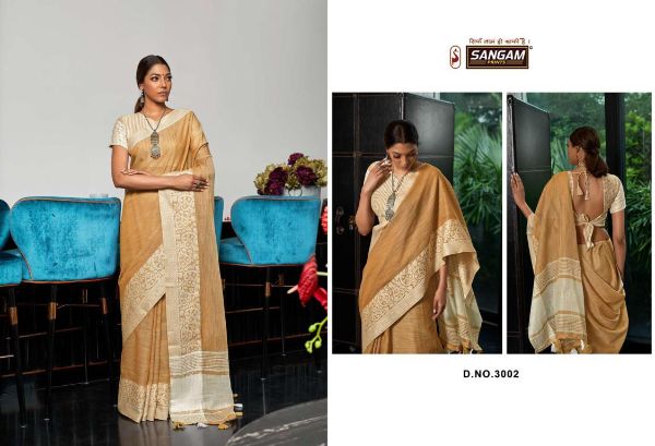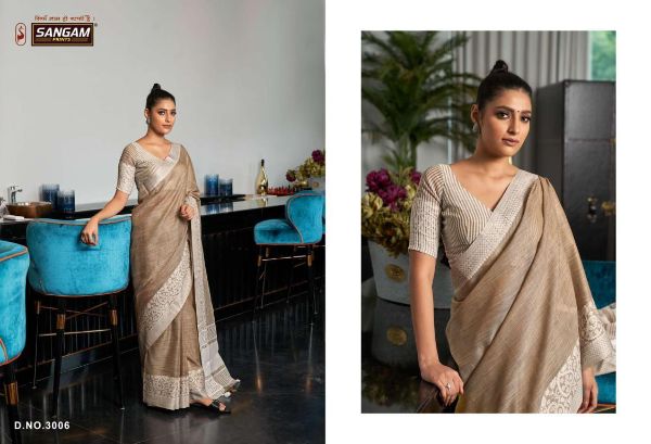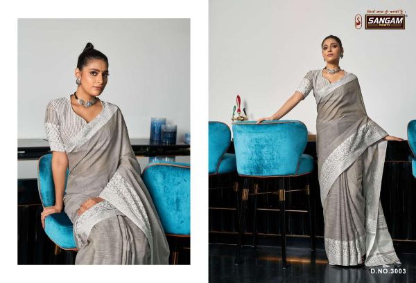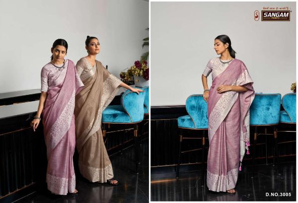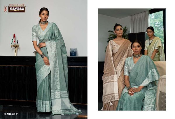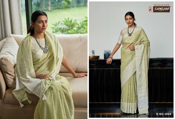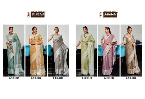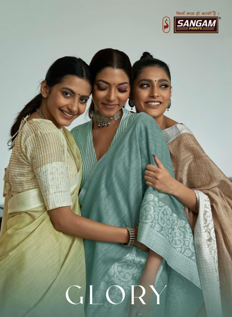 Sangam Presents Glory 3001-3006 Series Fancy Linen Fabric With Soft Weaving Saree Collection