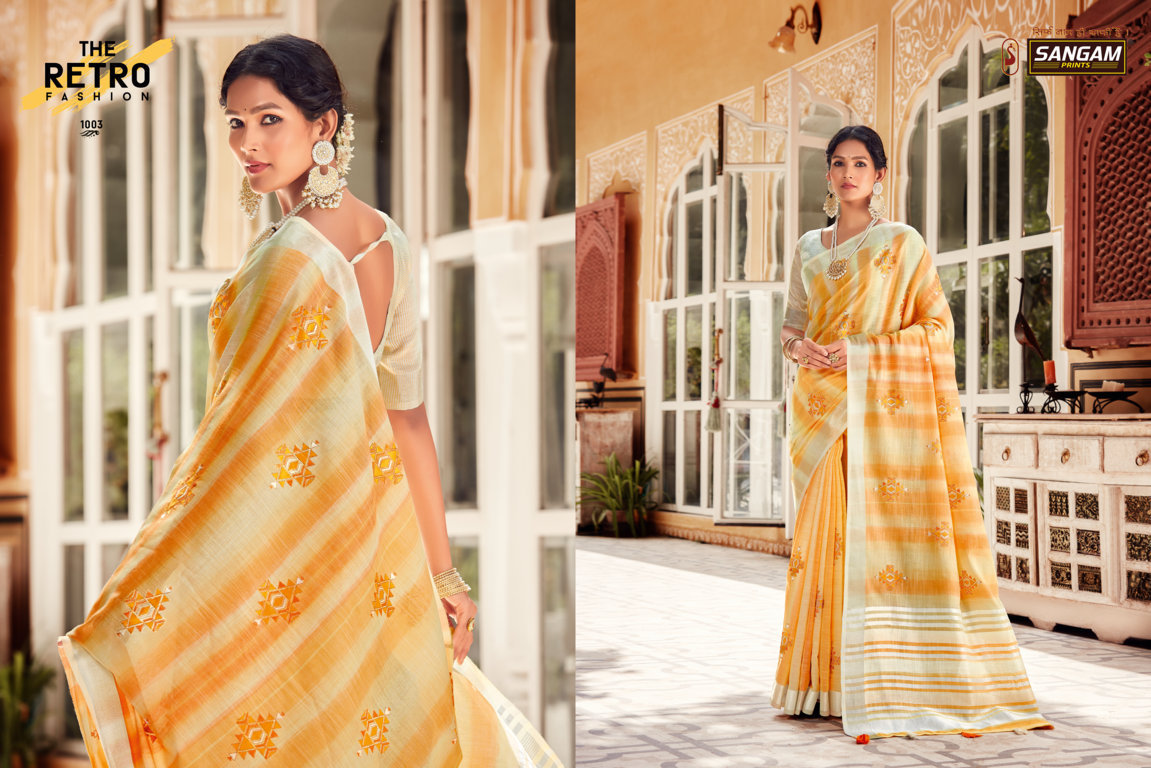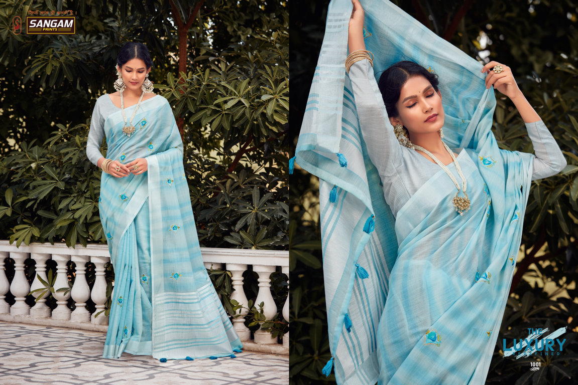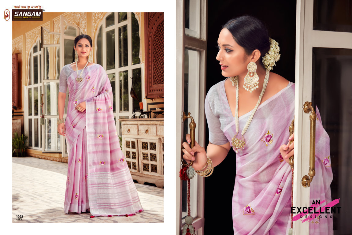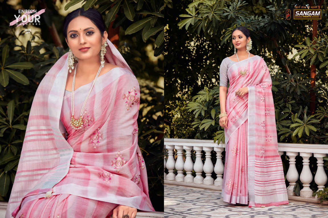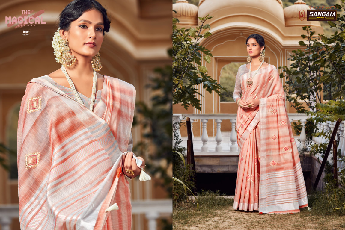 Sangam Presents Kavya 1001 - 1006 Series Beautiful Linen With Soft Weaving Fancy Casual Wear Saree Collection
