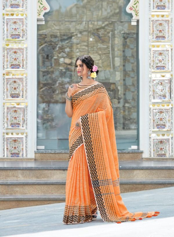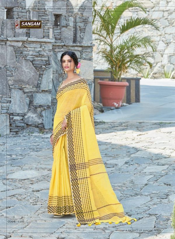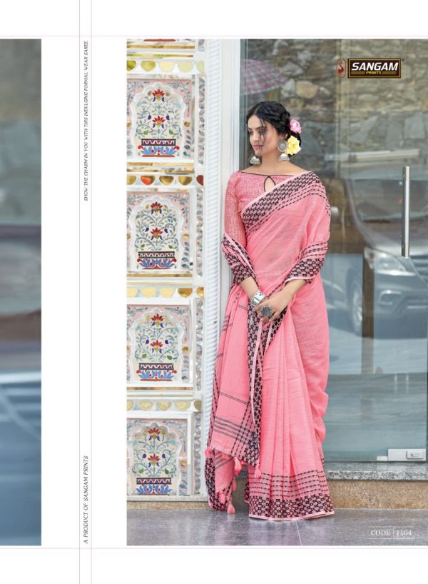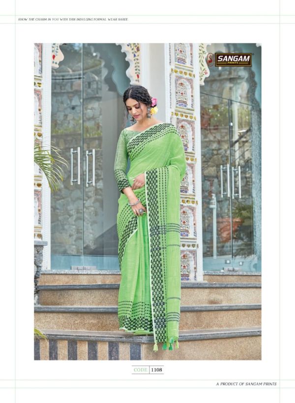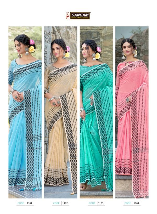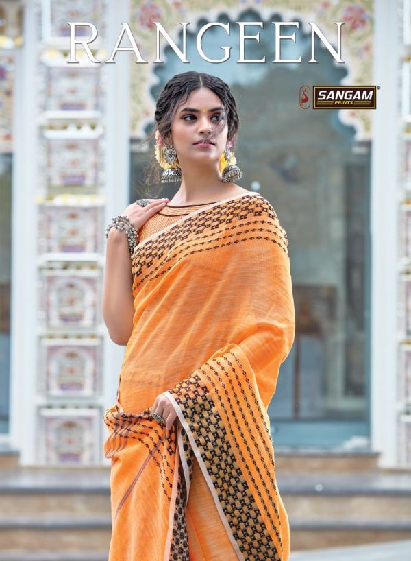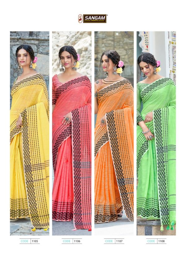Sangam Presents Rangeen 1101 -1108 Series Linen With Beautiful Designer Fancy Festival Wear Saree Collection