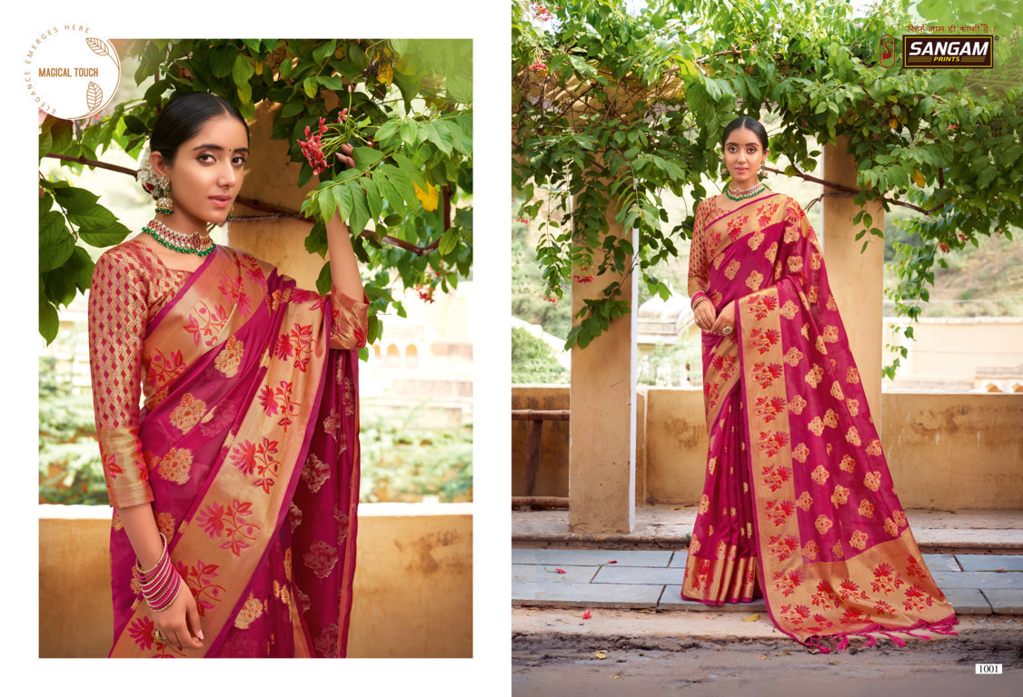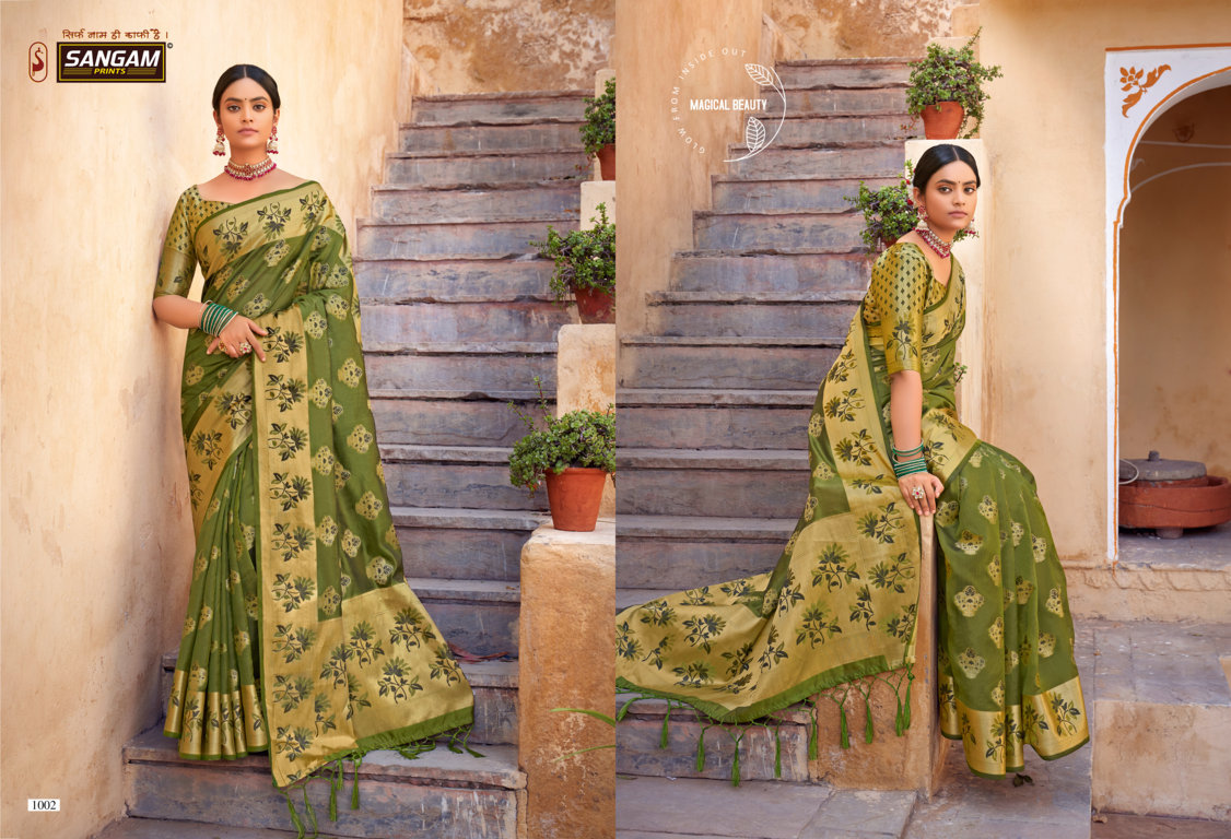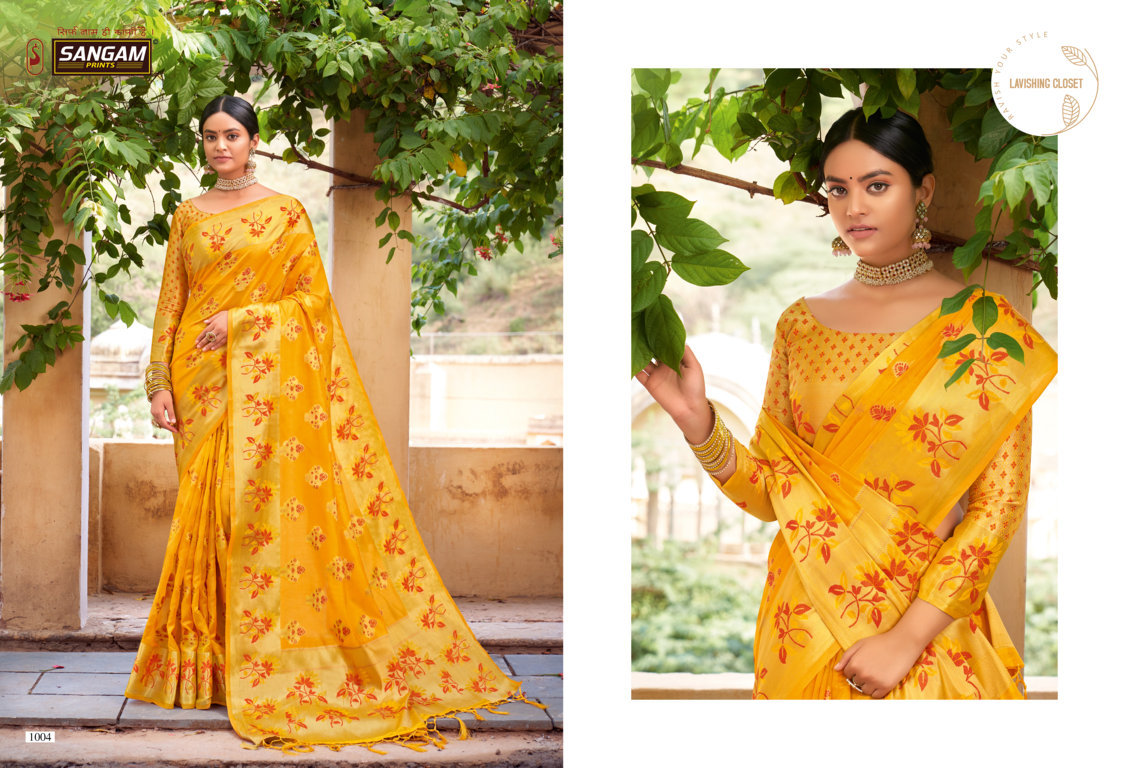 Sangam Presents Swamini 1001 - 1006 Series Beautiful Organza With Fancy Designer Print Event Wear Saree Collection